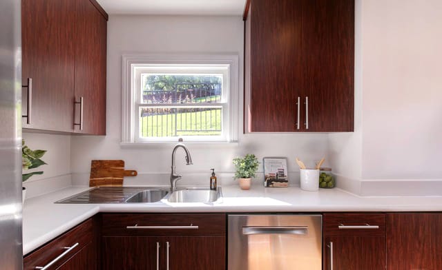 Kitchen is perfectly appointed and features tons of storage and beautiful stainless steel appliances.