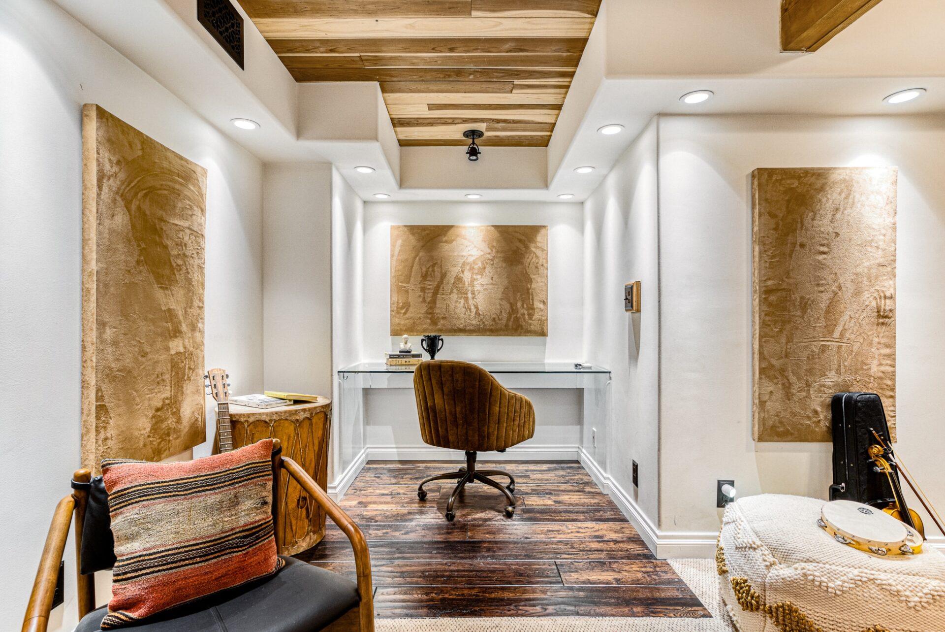 A lower level leads to 2 spacious bedrooms, one with its own balcony, plus a full bathroom. A recording studio with state of the art soundproofing and own entrance completes this amazing home.