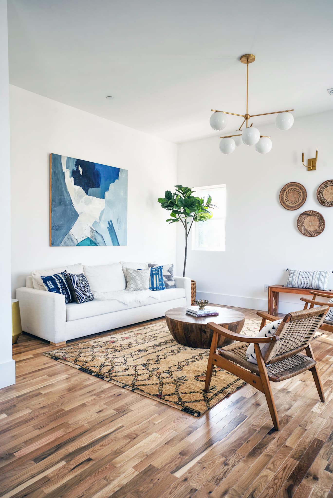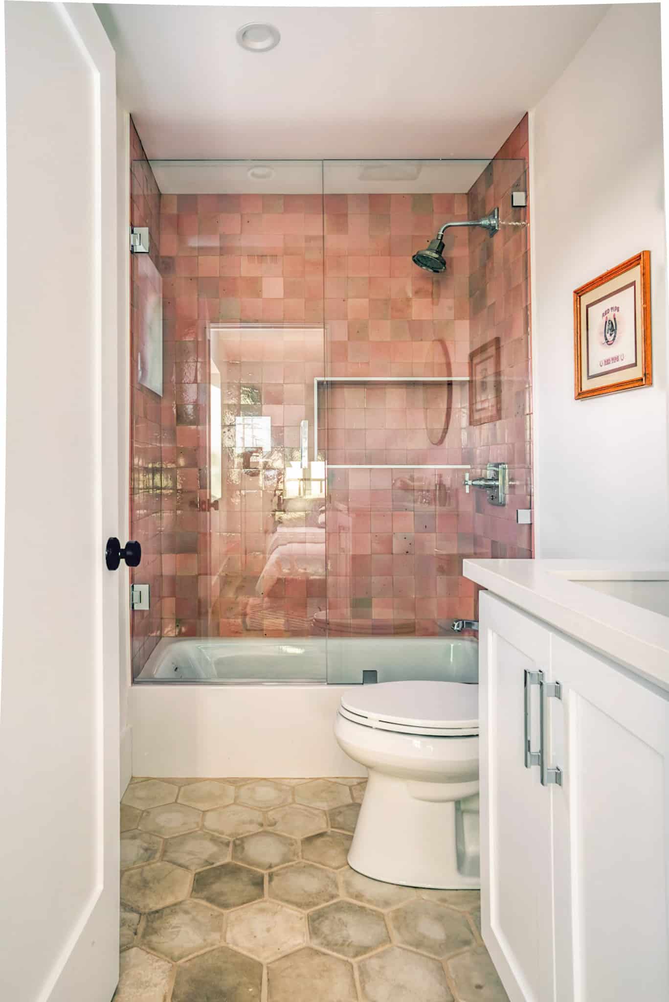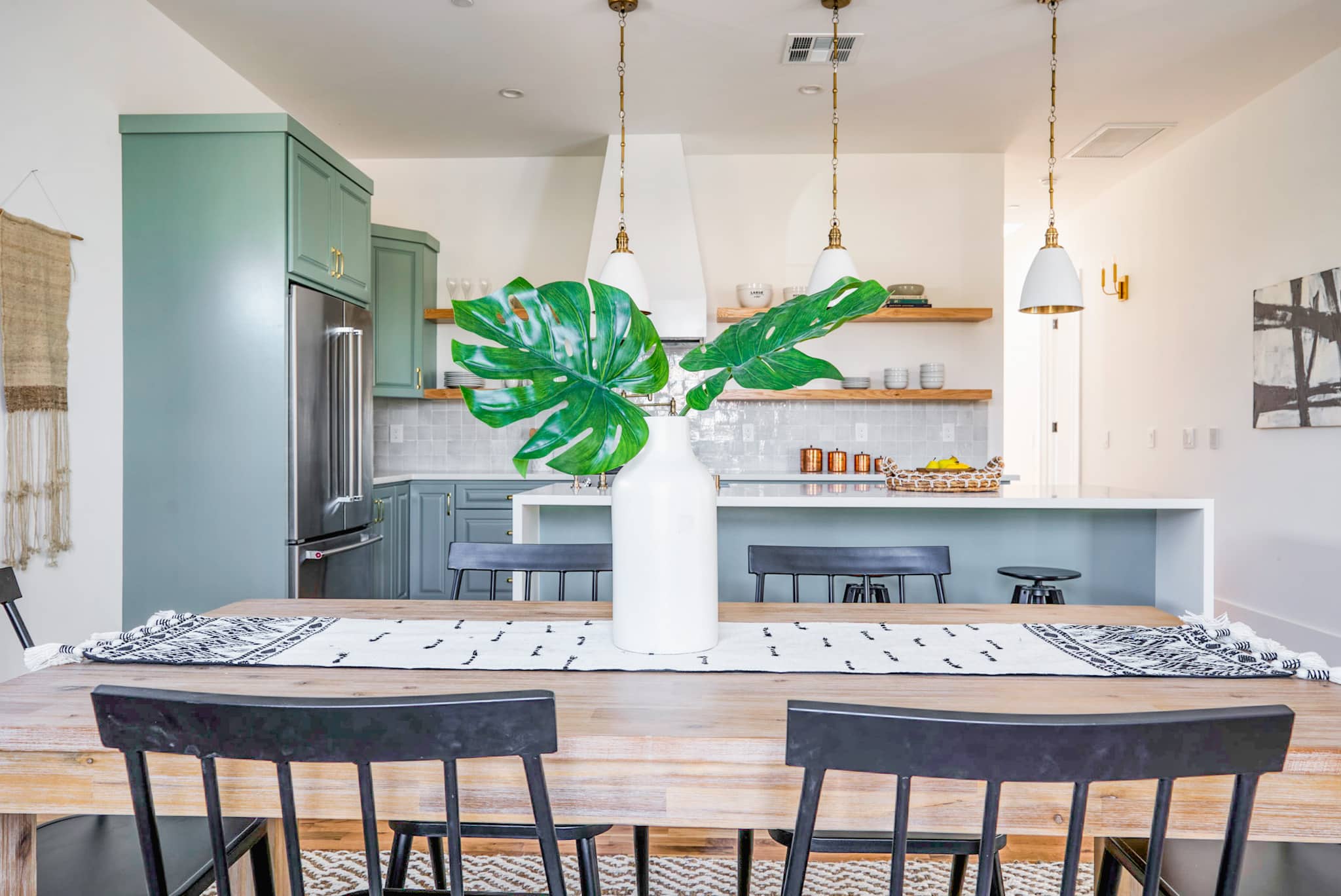 Three sizable bedroom suites and three full baths are tucked down a private corridor. Every room feels customized to perfection, with built-out closets in the bedrooms, and eclectic bathrooms featuring Cle Tiles and modern but charming fixtures.