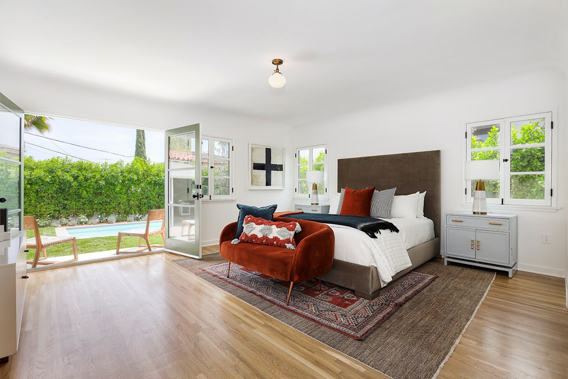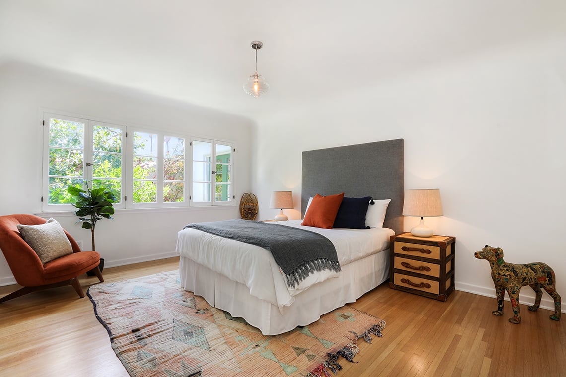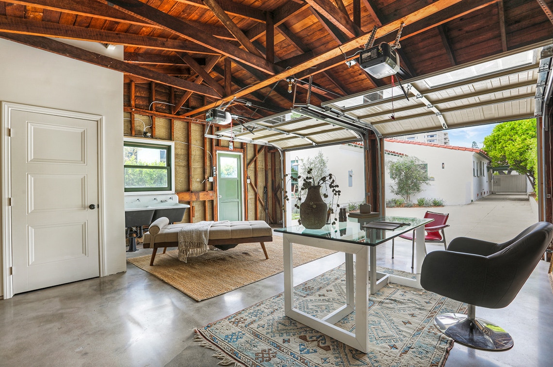 The backyard boasts an emerald grassy lawn and new sparkling pool. Garage with bathroom makes for a great flex space, perfect for a gym, creative studio or home office. Clay tile roof, large wood windows, archways and beautiful light fixtures; this striking home brings all the charm, design and a fabulous location – just minutes from all the great spots in Los Feliz Village, Griffith Park and so much more!