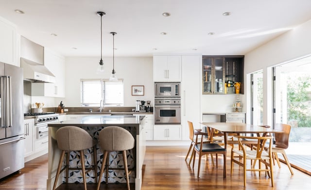 Inside, bright walls and handsome wood floors lead your eyes across a beautiful open concept and sun-splashed interior.