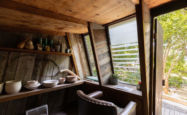 Inside, period details like clerestory windows, wood panel walls, cork flooring, and formica countertops await; bringing a certain magic to the space that has you instantly feeling at home.
