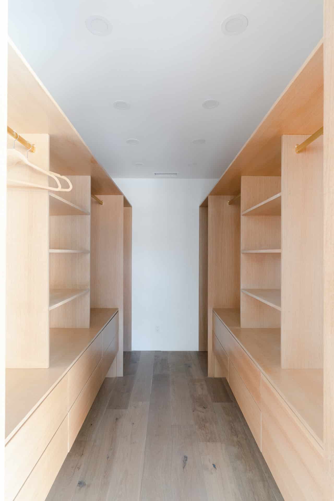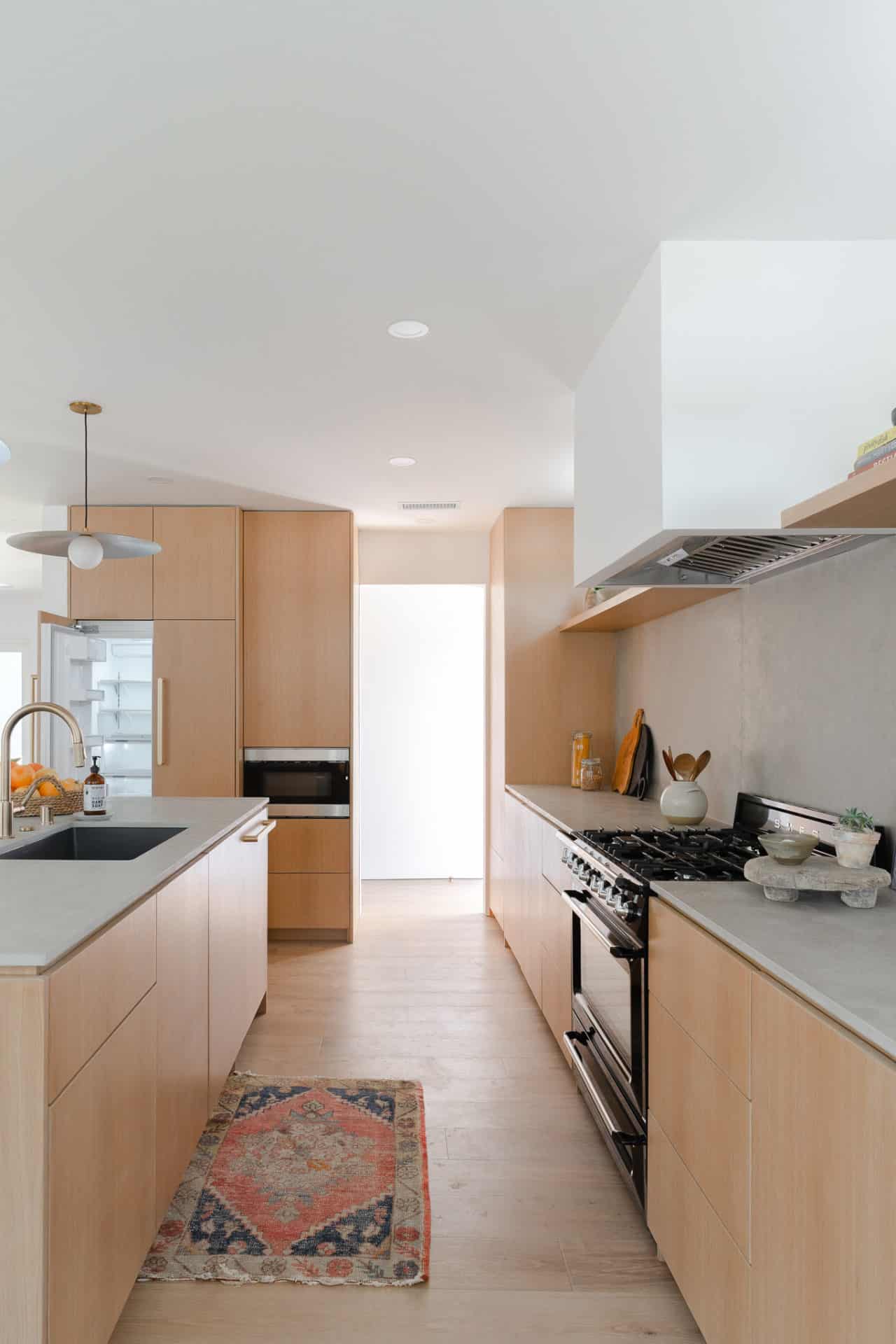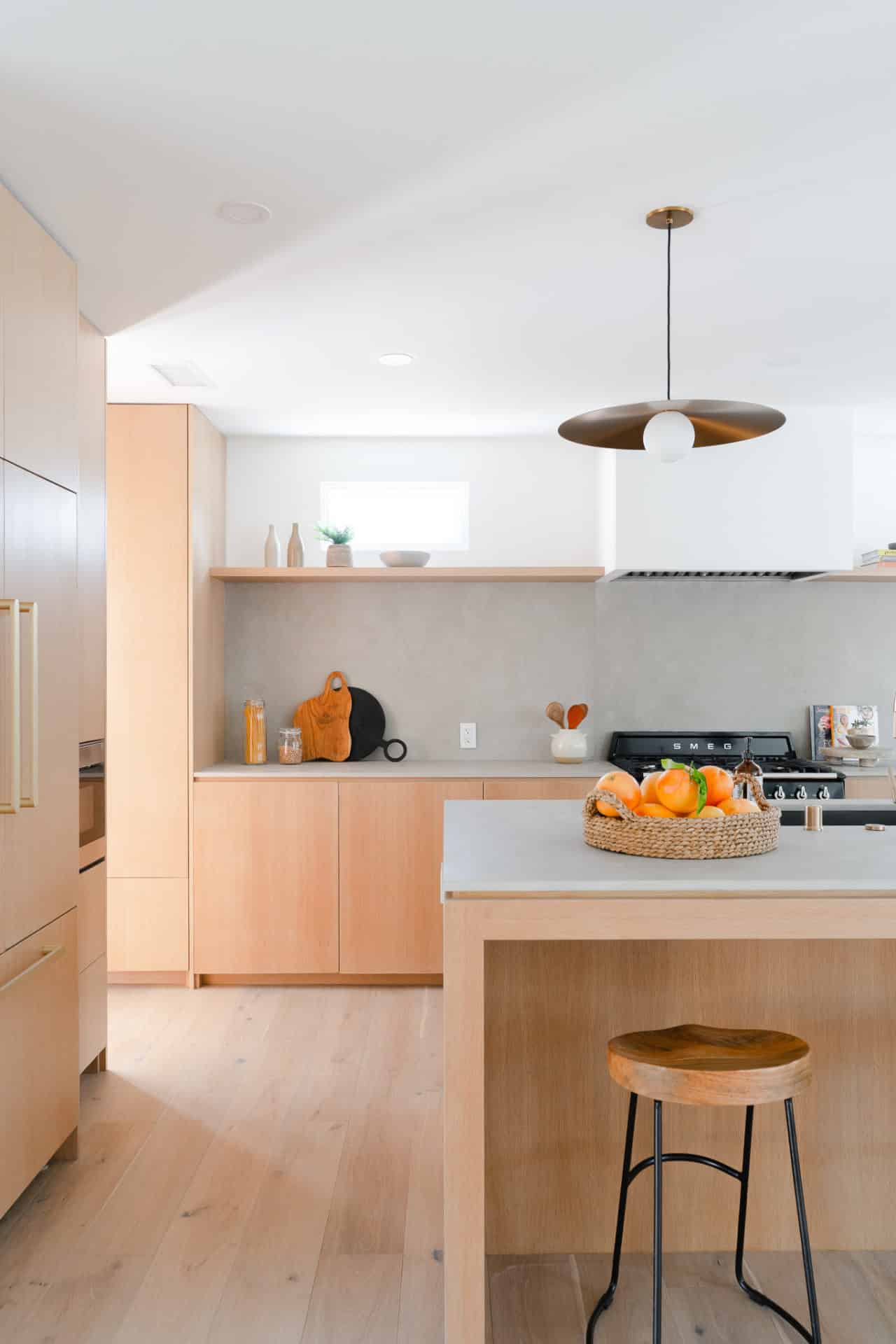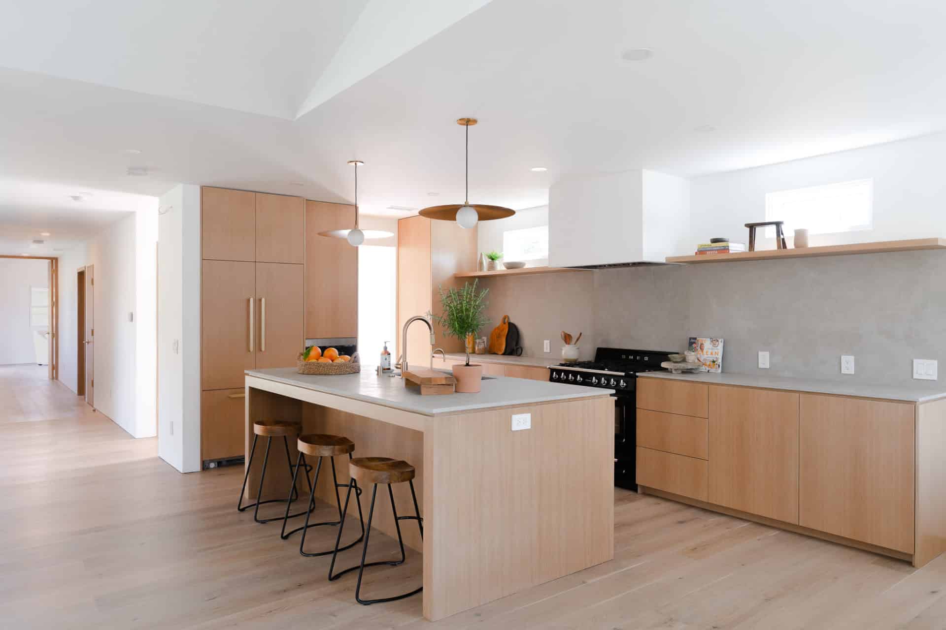 The chef’s kitchen is a content creator’s dream featuring custom cabinetry wrapped in limestone counters and top of the line appliances. A Dwell-worthy built-in banquette offers the perfect place for a morning meetup, or dine al fresco at the private outdoor space off of the kitchen complete with an herb garden.