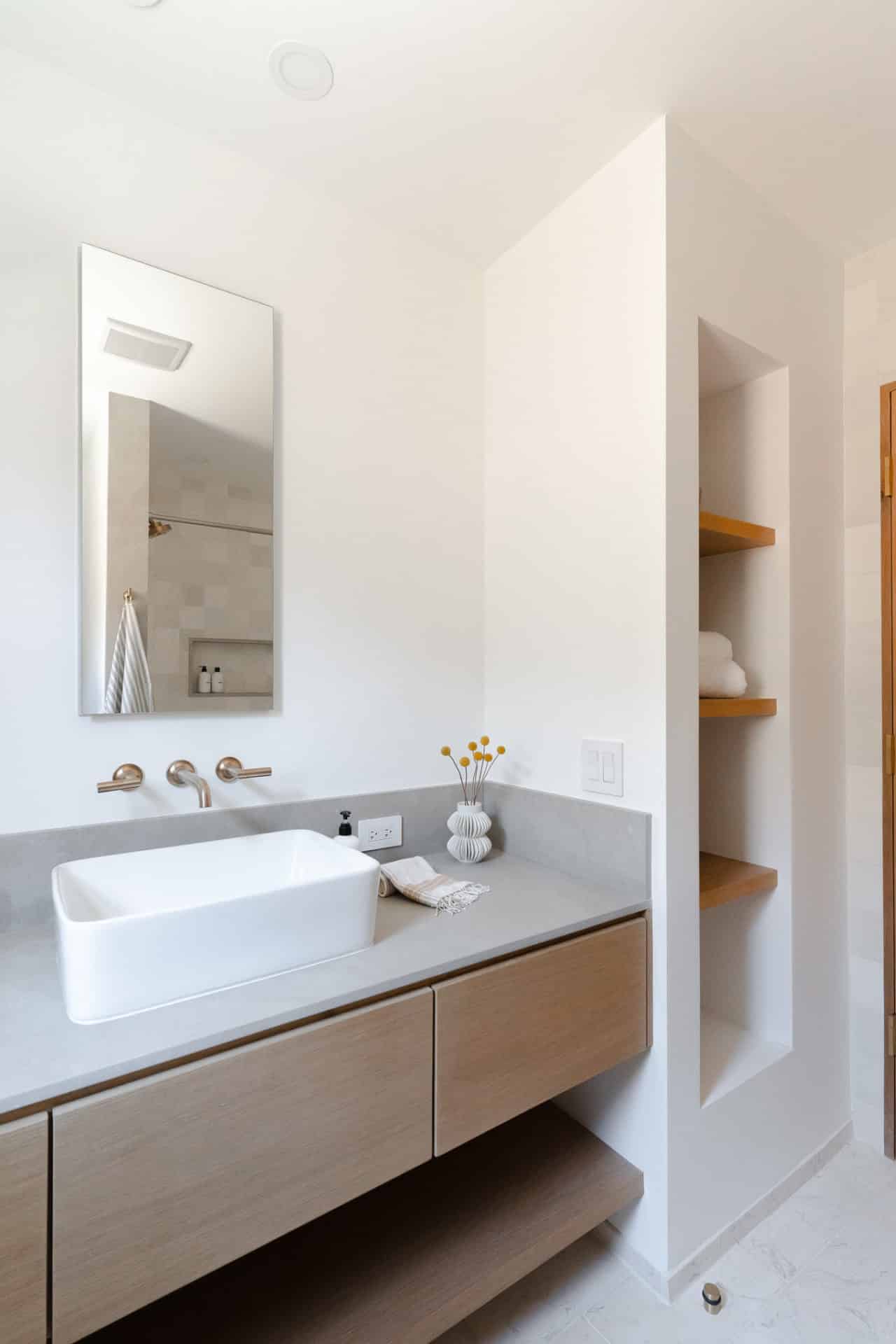 Two private bedroom wings lead to four spacious bedrooms with fully-customized built-in wardrobes and wood trim detailing. Enjoy three baths (including two en suite) designed to perfection with Zellige tiles, limestone + terracotta elements and brushed brass finish.