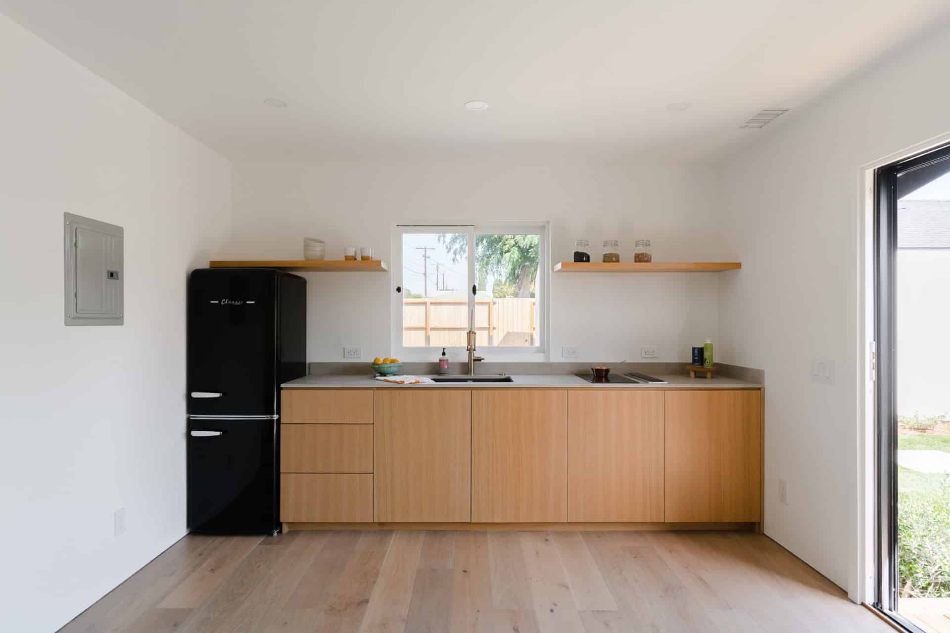 No expense was spared on the ready to rent, style forward studio with a sleek ¾ bath and a kitchenette with thoughtful finishes such as an electric cooktop + downdraft vent.