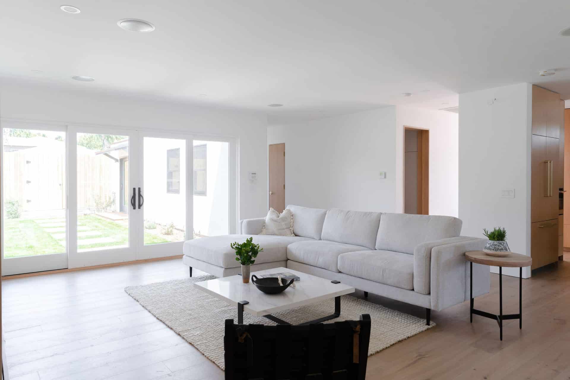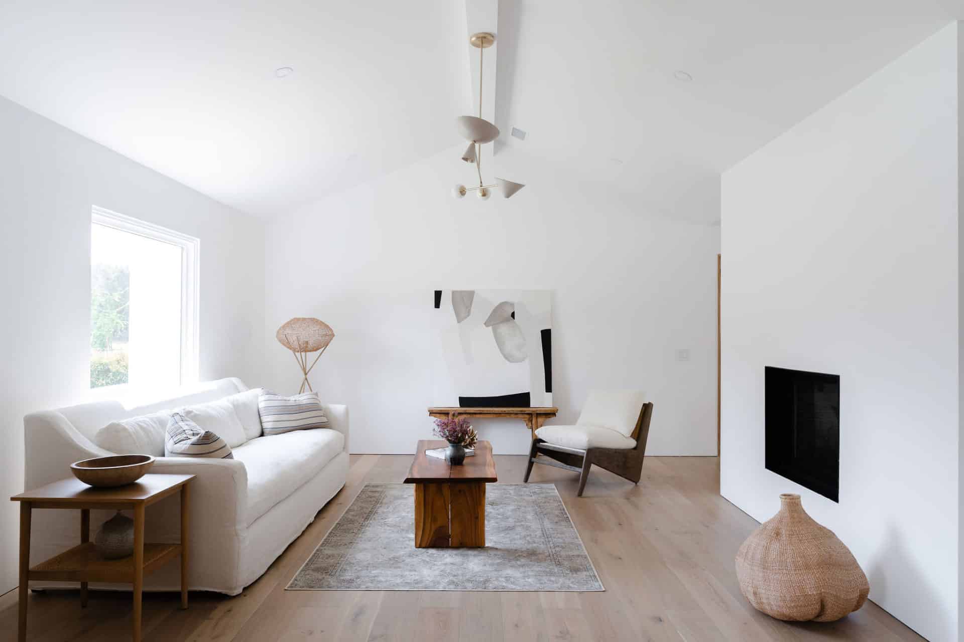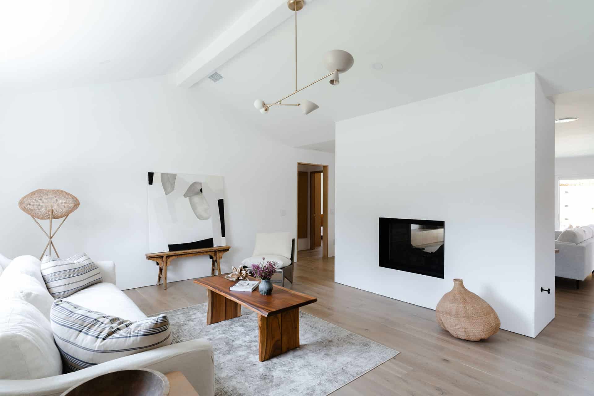 Wide open floorplan masterfully curated with modern functionality in mind offers a living room + den separated by a new double-sided gas fireplace and boasting white washed oak floors, clean lines and modern simplicity.