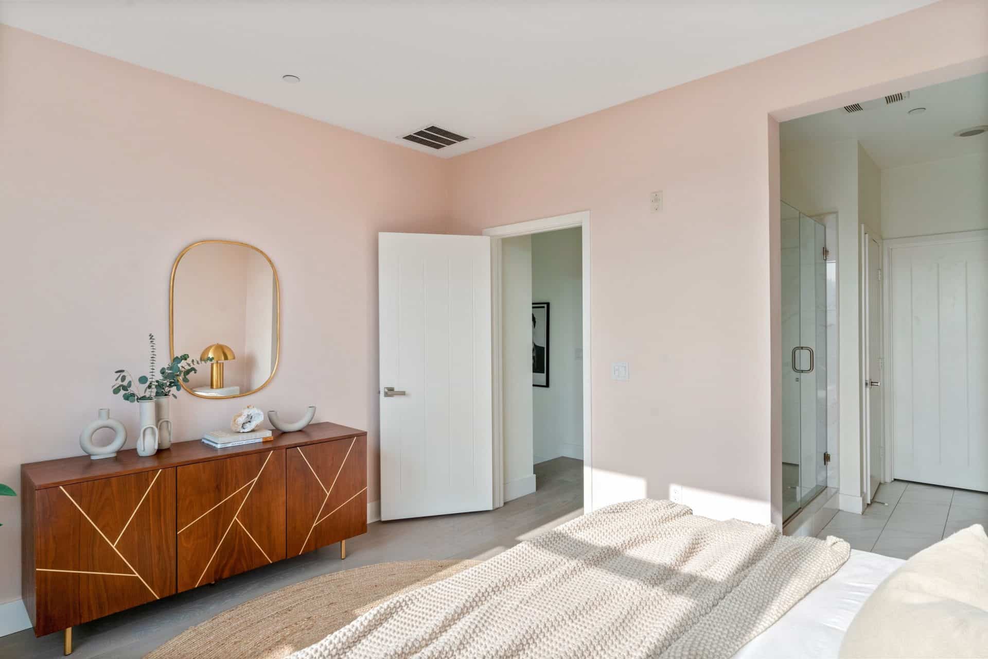 Two car attached garage. This home is a vibe! Amenities include a resort-style pool and outdoor shower plus guest parking.