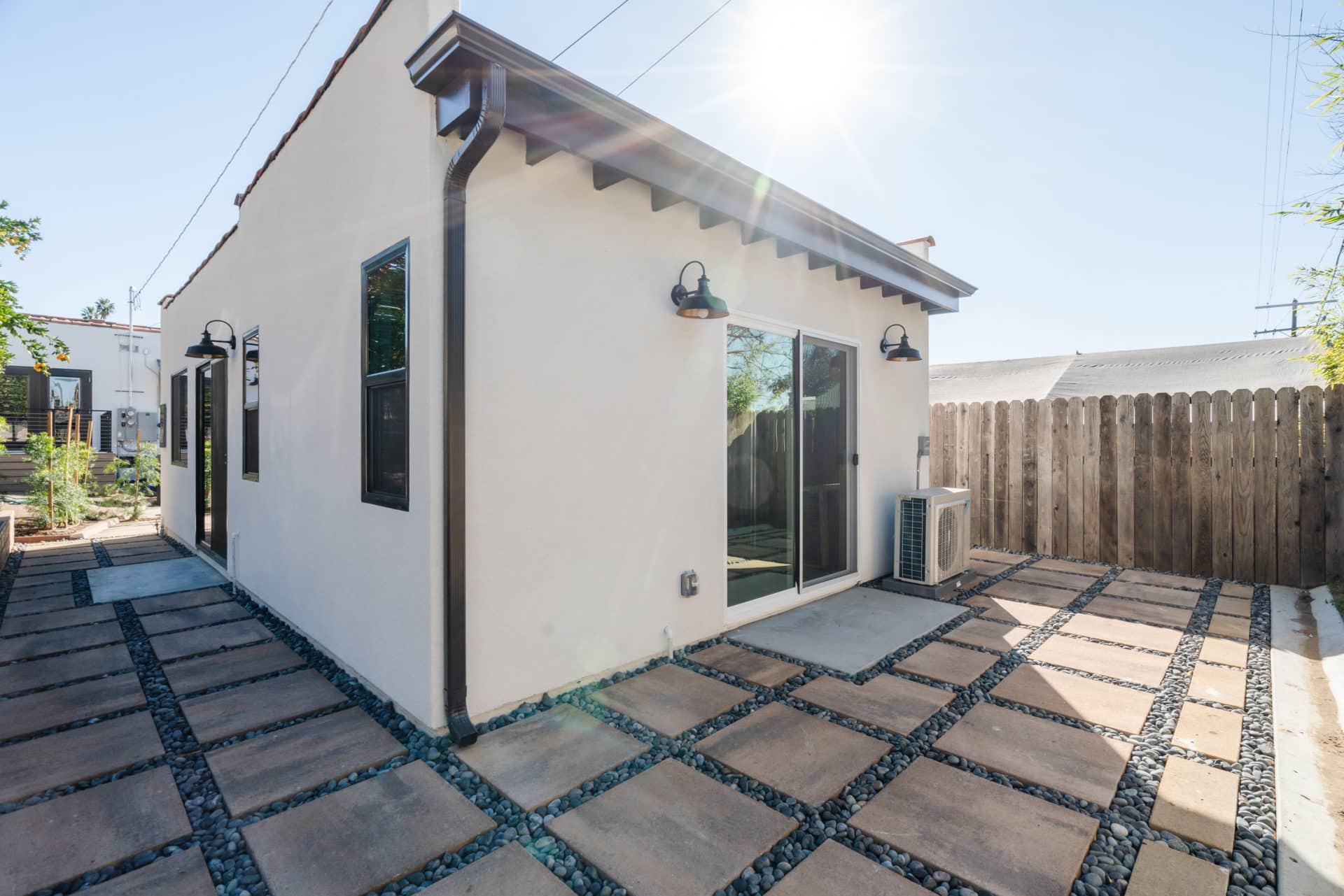 Concrete paver patios add another layer of modern sophistication to this well designed ADU.