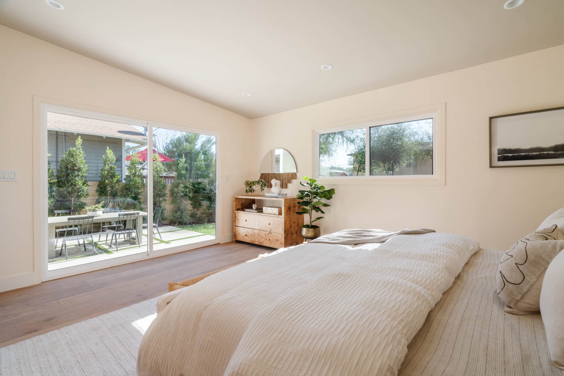 Sliders in the primary suite open out to the outdoor patio for easy indoor/outdoor living, where a sprawling green lawn awaits, with new irrigation and pine fencing. Plenty of room for a future ADU, office shed or pool!