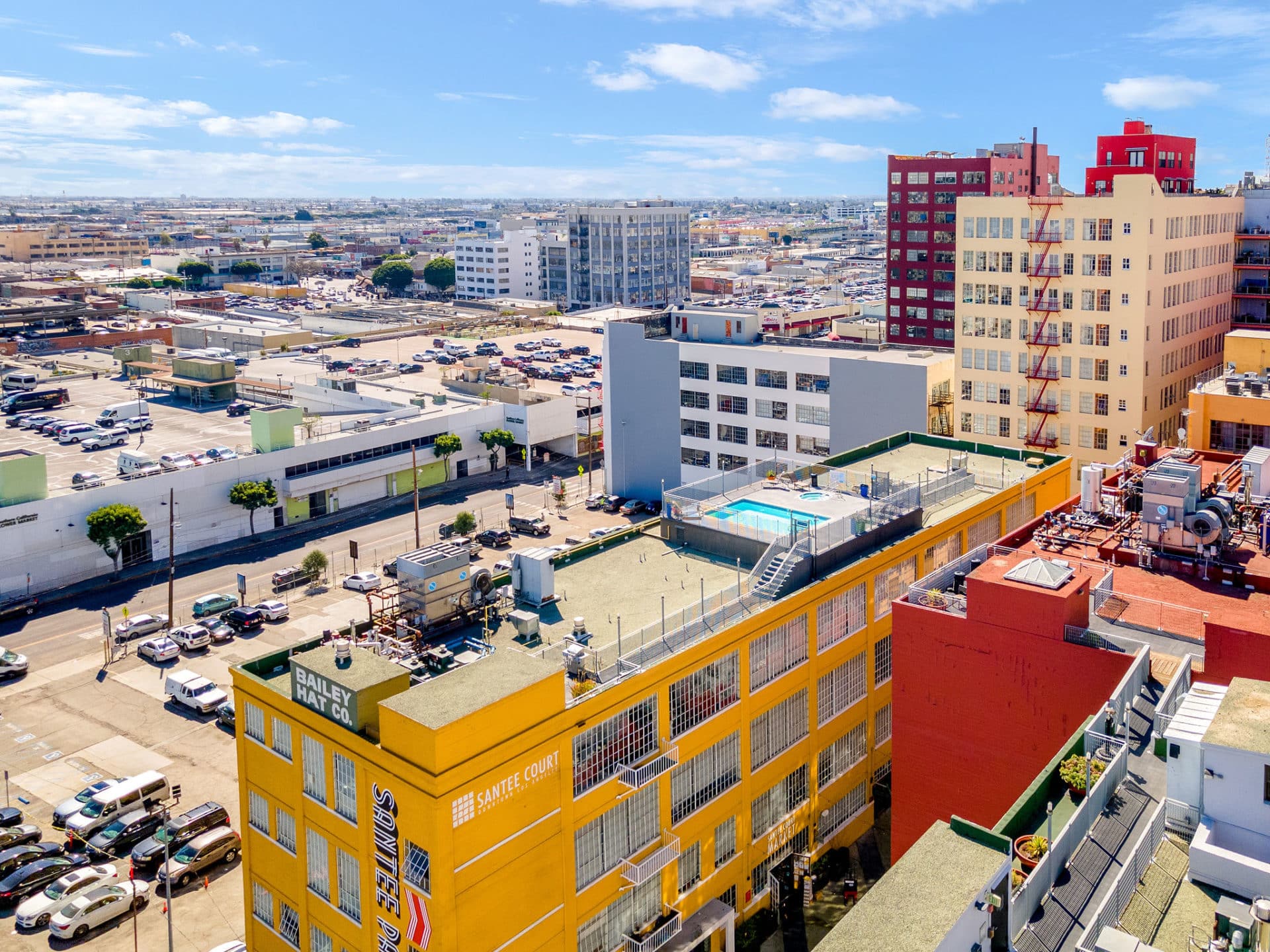 Due to its rich history, it is a historical monument and comes with tax benefits of being under the Mills Act. Also, the building is pet friendly with no restrictions. Just around the corner from Sonoratown. Blocks away from the Flagship Applestore, Whole Foods, and FIDM University and a quick drive to USC. Discover the tranquility of Santee Village while being steps away from the bustling and vibrant downtown life.