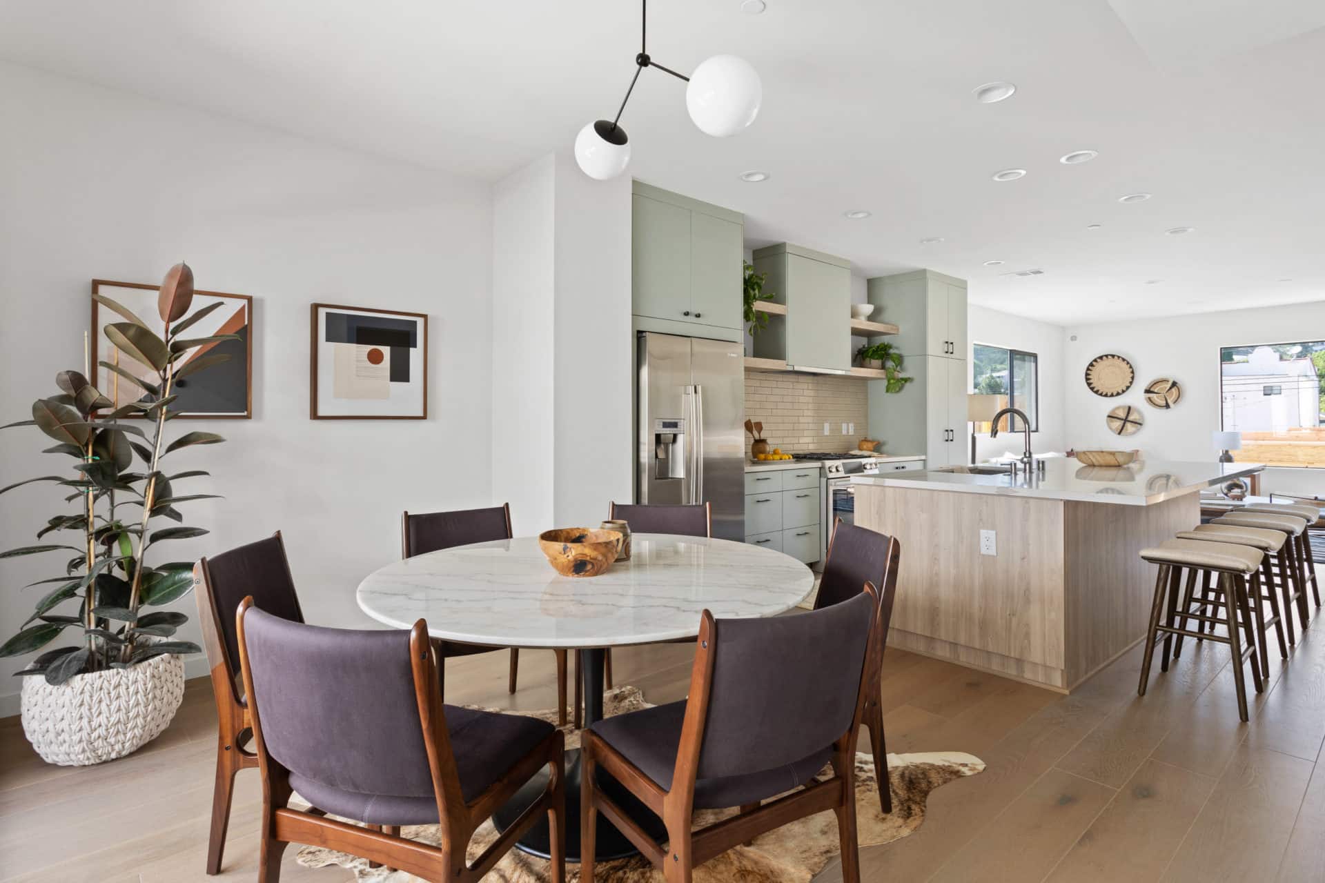 The 2nd floor open concept kitchen features all Bosch appliances, eat-in center island with quartz countertops, ideal for oversized cheese boards and wine night.
