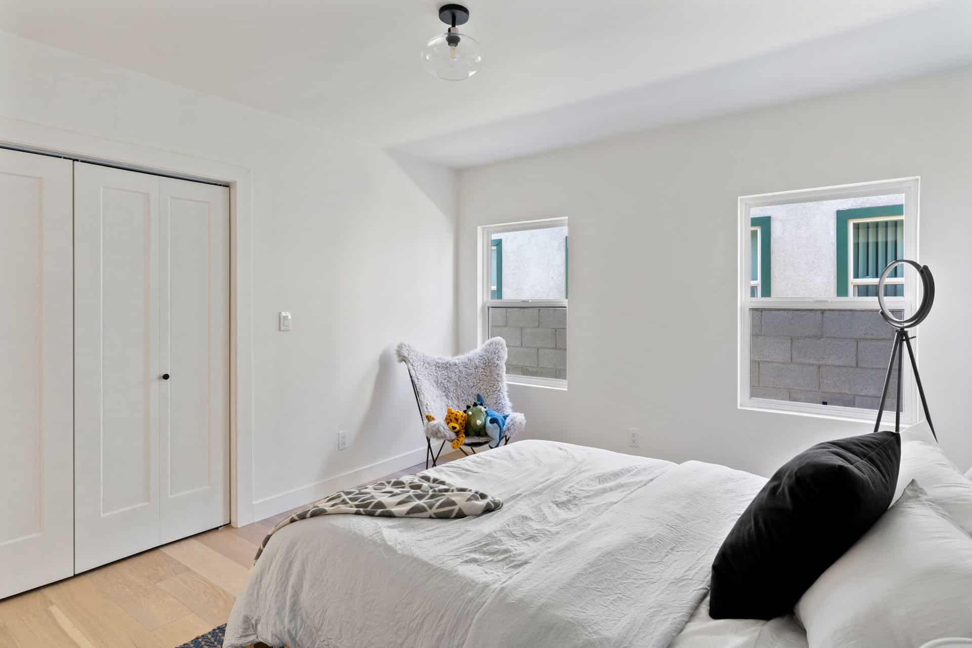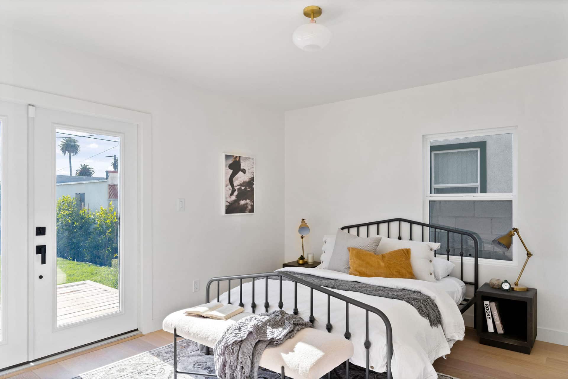 The master bedroom is a zen oasis with it’s own full en suite bathroom and french doors to the deck.
