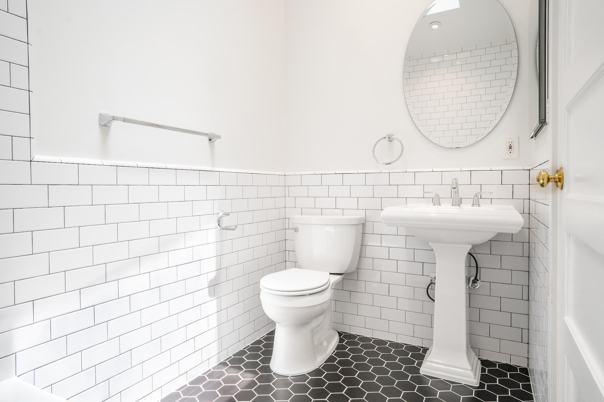 The ensuite primary bathroom has been elevated with a skylight, vanity and has freshly re-tiled subway tile surround.