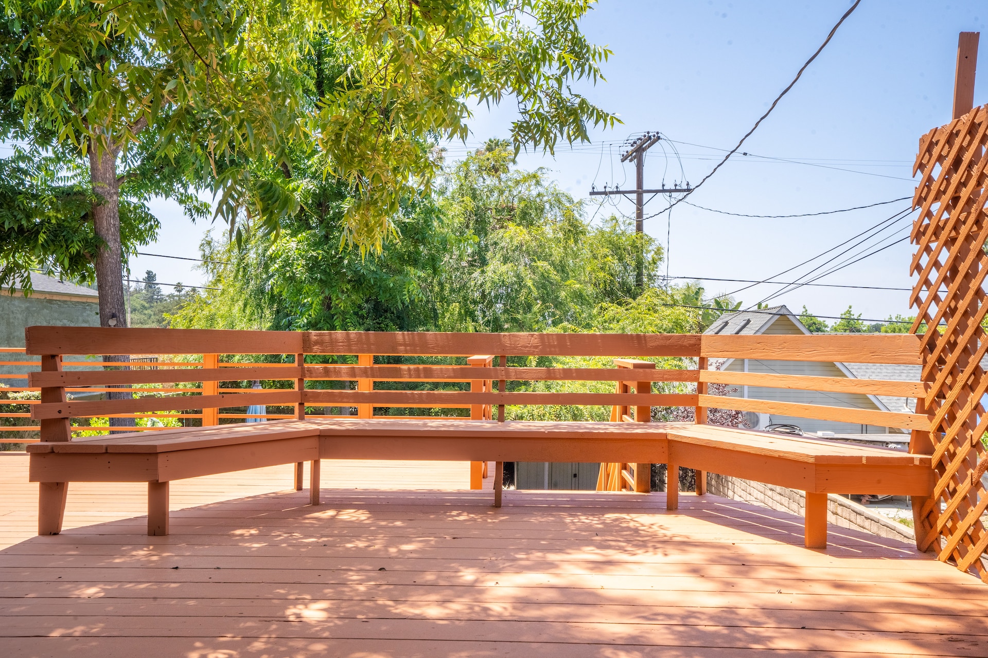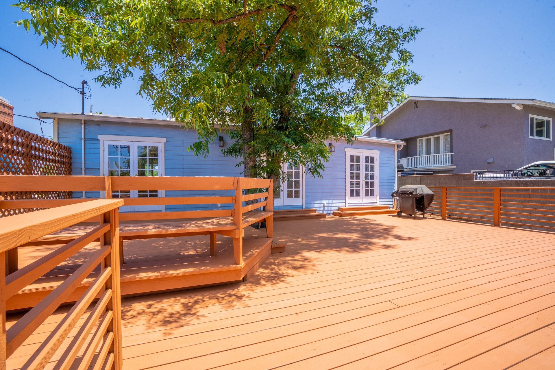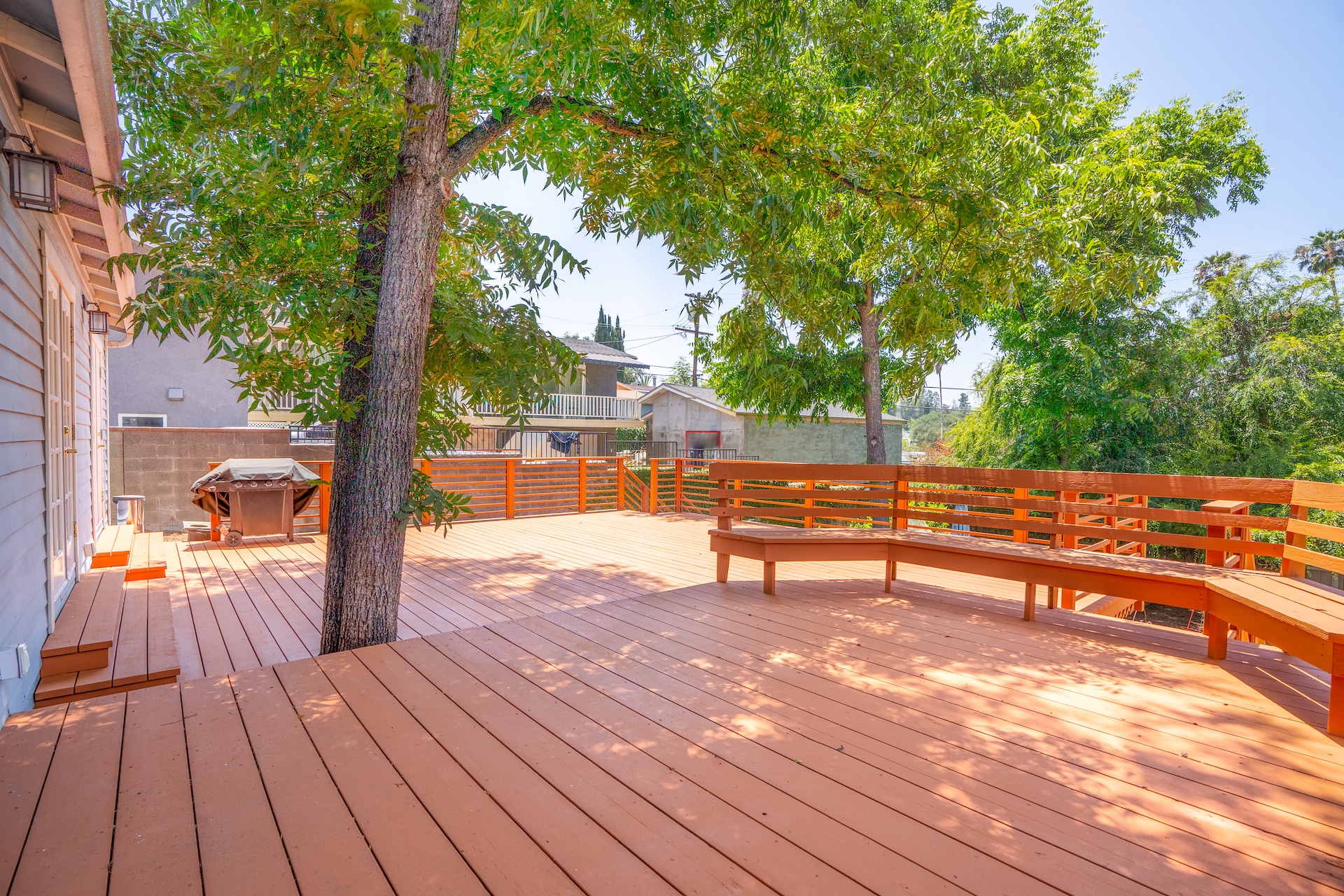The freshly painted backyard deck spans across the width of the house, providing built-in bench seating, shade from a mature-sized tree at its center, and plenty of space to entertain—hello 4th of July BBQ and endless summer happy hours to endless reading & writing sitting on the bench. Daydreaming is a must here.
