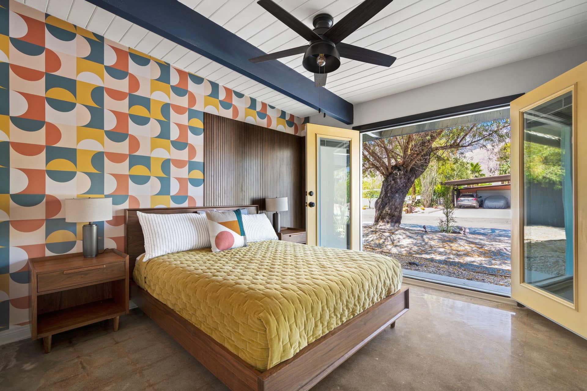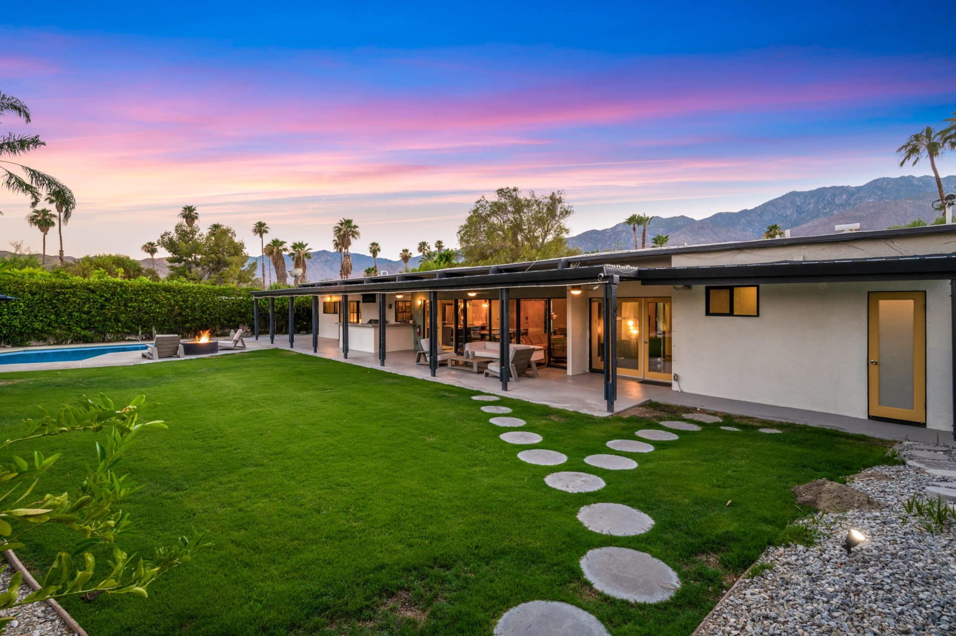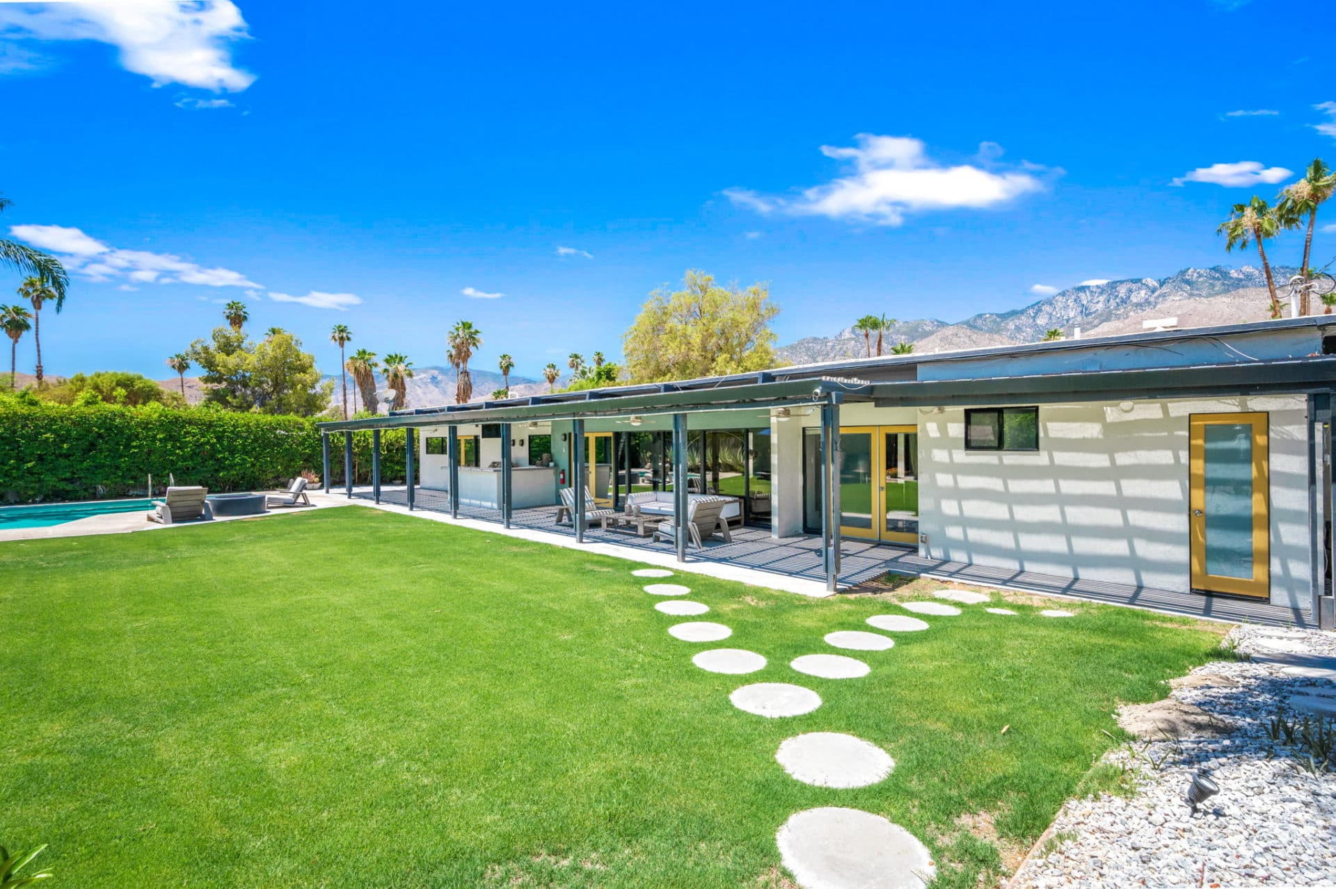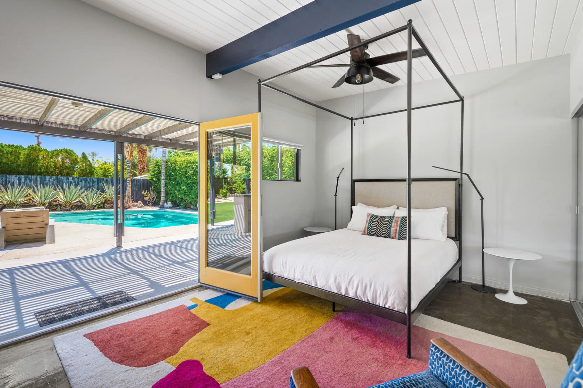 Fun colors and designs throughout make this a quintessential Palm Springs home.