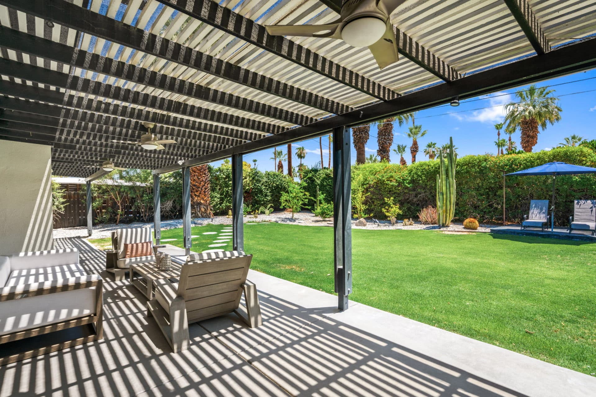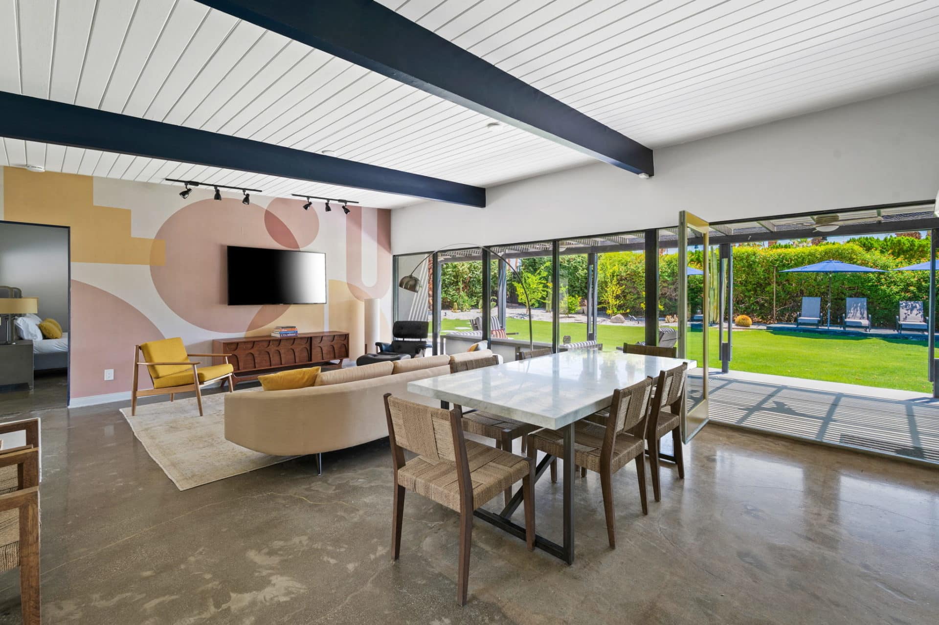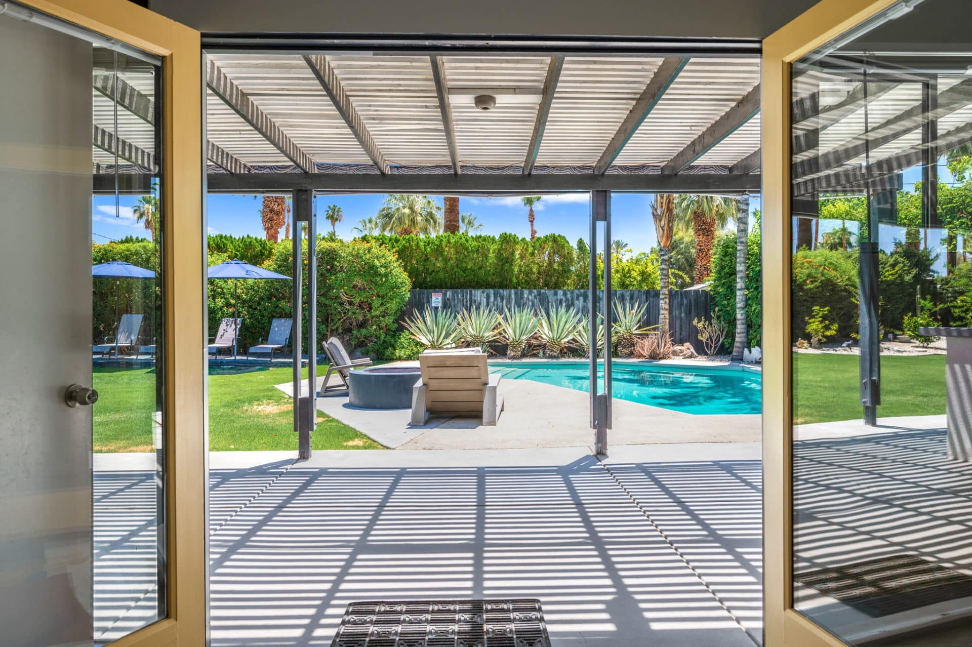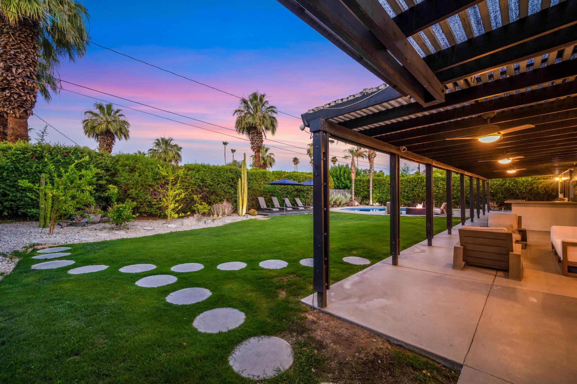 Fun colors and designs throughout make this a quintessential Palm Springs home.