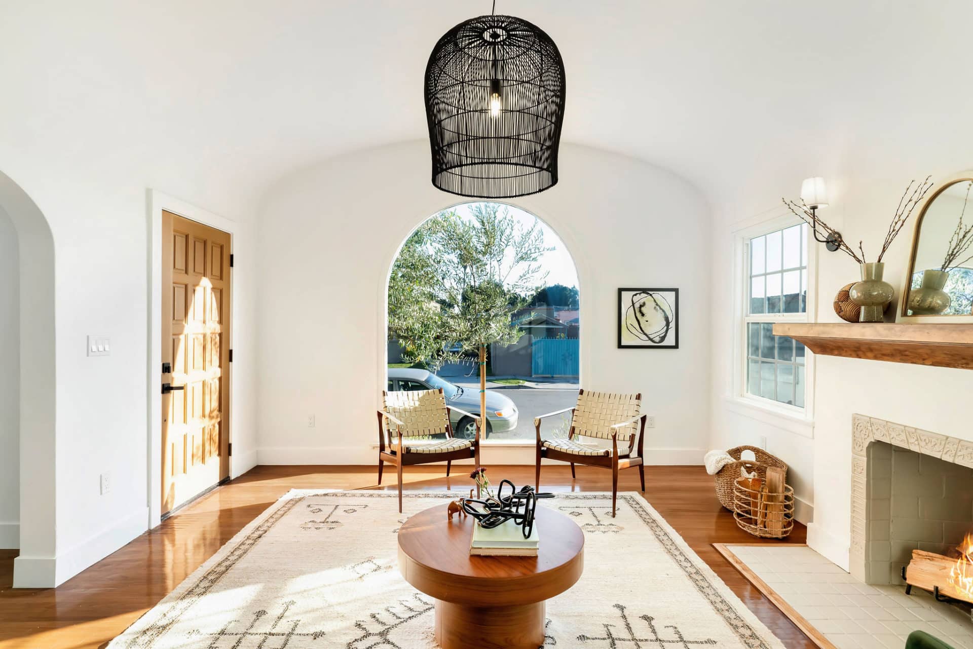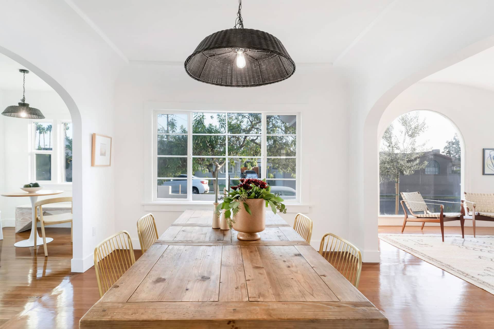 The magic begins at hello, where a front porch dabbled in gorgeous Saltillo tile leads you inside to a bright interior with newly polished original hardwood floors.
