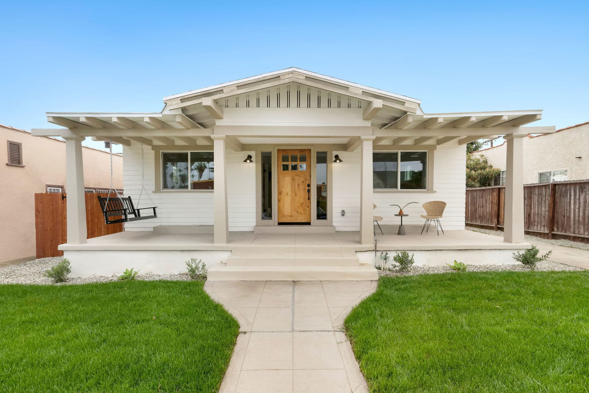 Romantic and minimalistic Scandi-Craftsman Bungalow on huge grassy lot in buzzing Mid-City! From the tree-lined street, step up to a spacious front porch with a nostalgic swing, setting the tone for the serene sanctuary that awaits within.