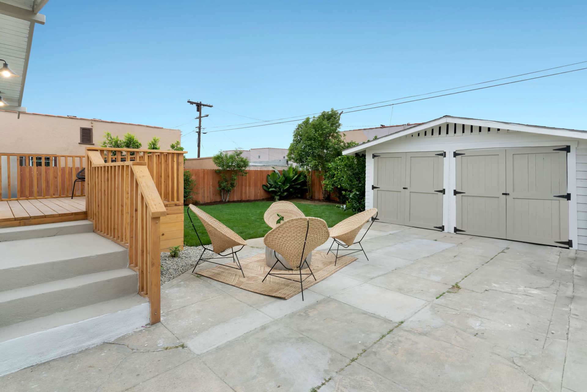 A 2-car garage with barn doors offers tons of potential for parking, storage, or a potential ADU! Spacious driveway doubles as a patio perfect for firepit socials under the stars.