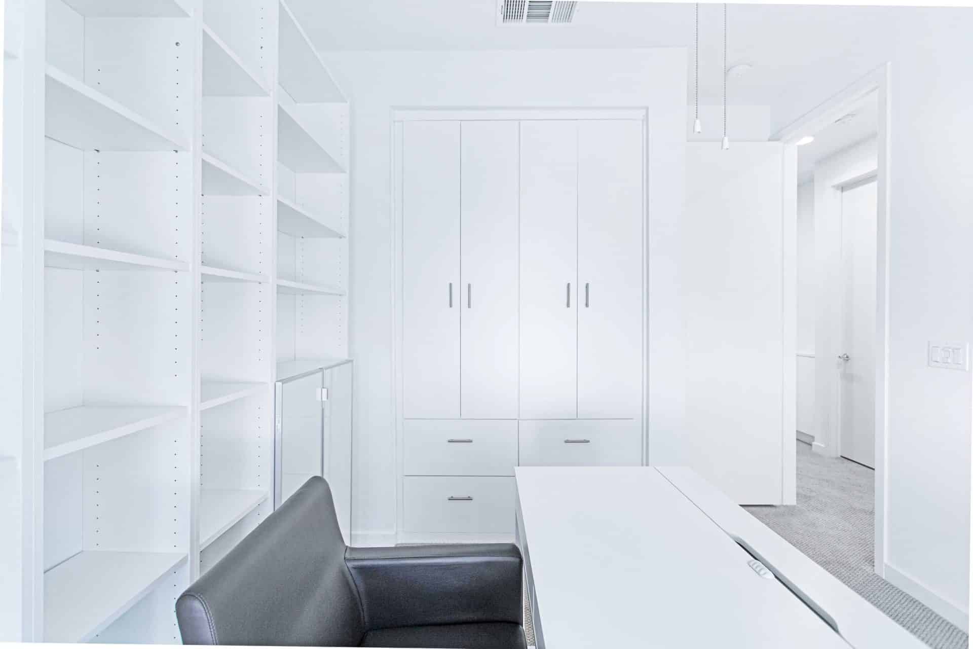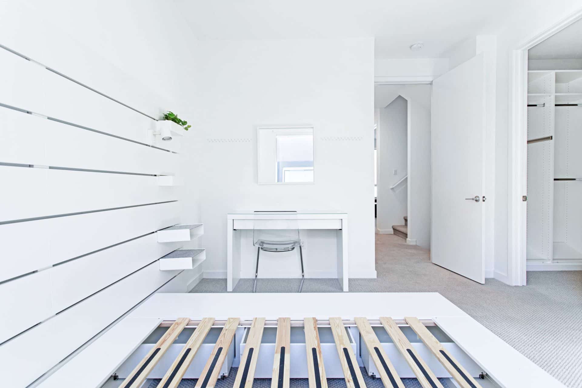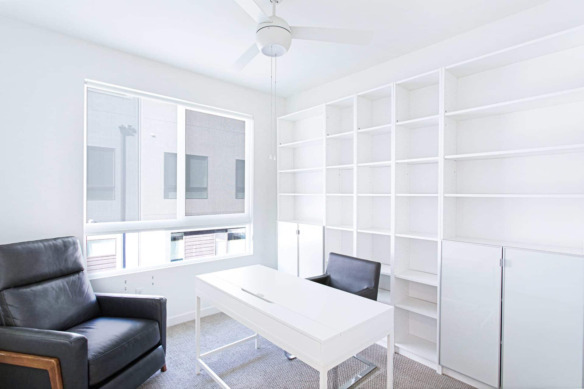 The third level features the sophisticated primary suite with custom walk-in closet and a spacious bathroom with dual sinks. Two more bedrooms and one bathroom finish off the level, with one bedroom currently set up as an office, but flexible to set up as a nursery, or another bedroom.
