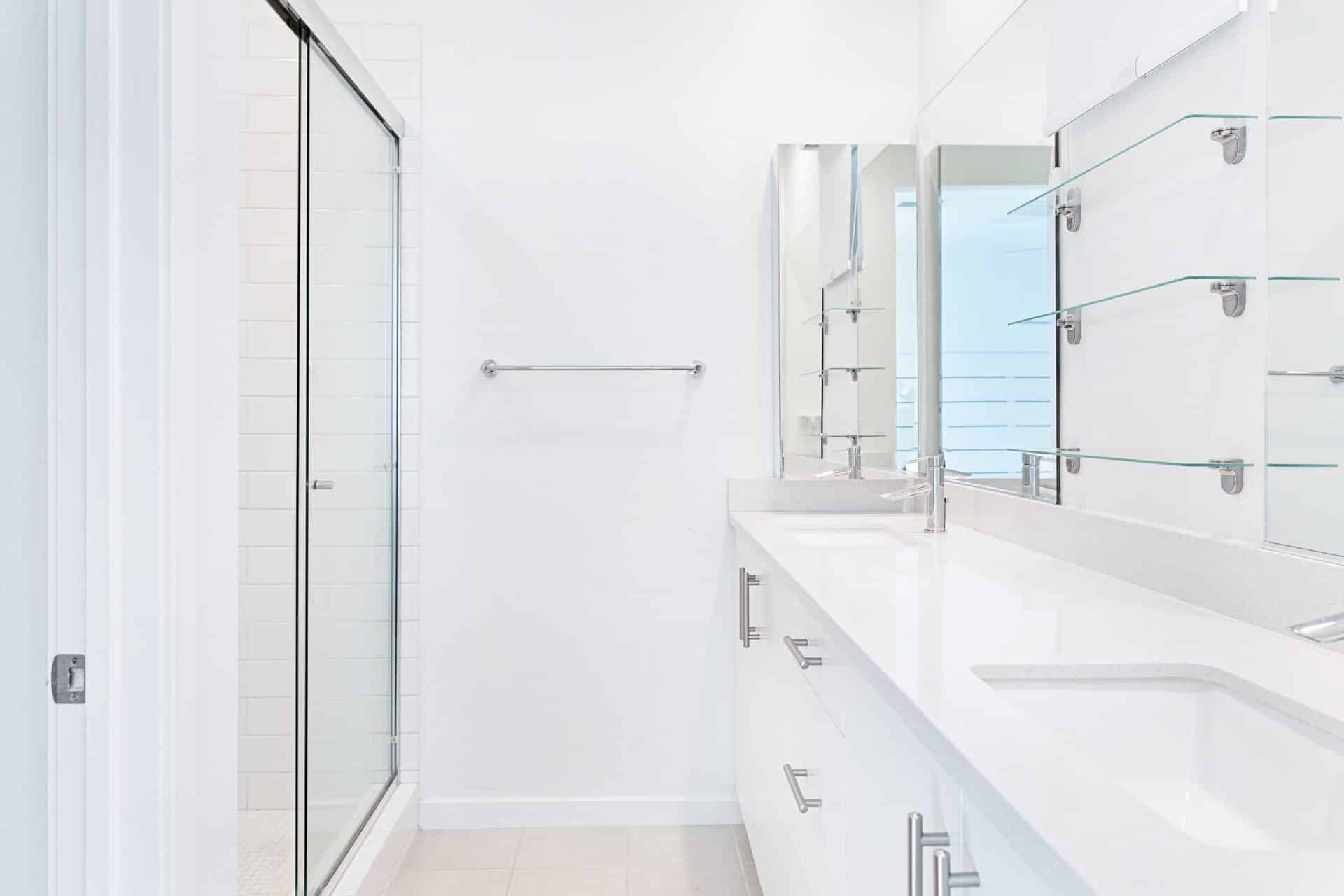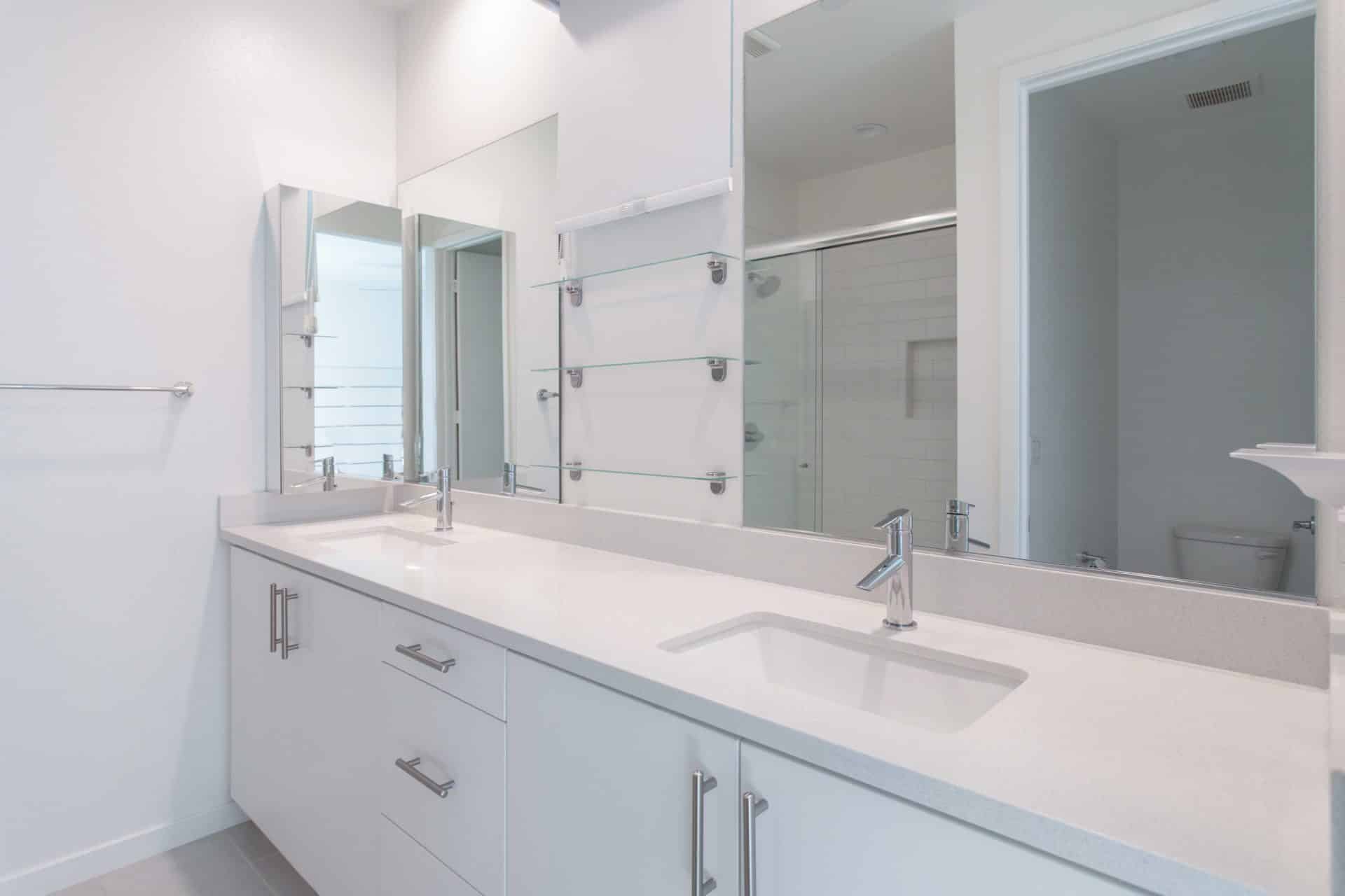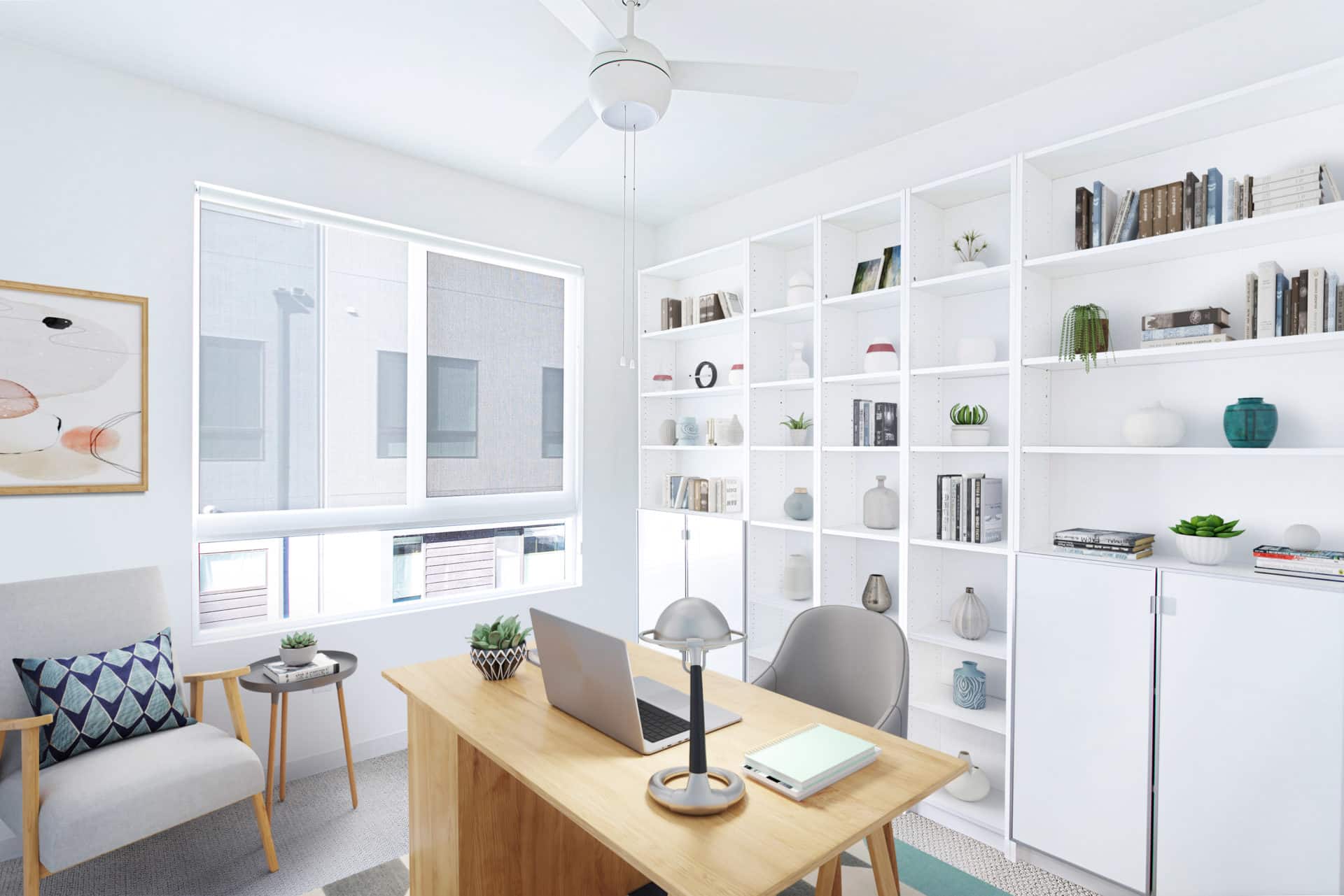 The third level features the sophisticated primary suite with custom walk-in closet and a spacious bathroom with dual sinks. Two more bedrooms and one bathroom finish off the level, with one bedroom currently set up as an office, but flexible to set up as a nursery, or another bedroom.