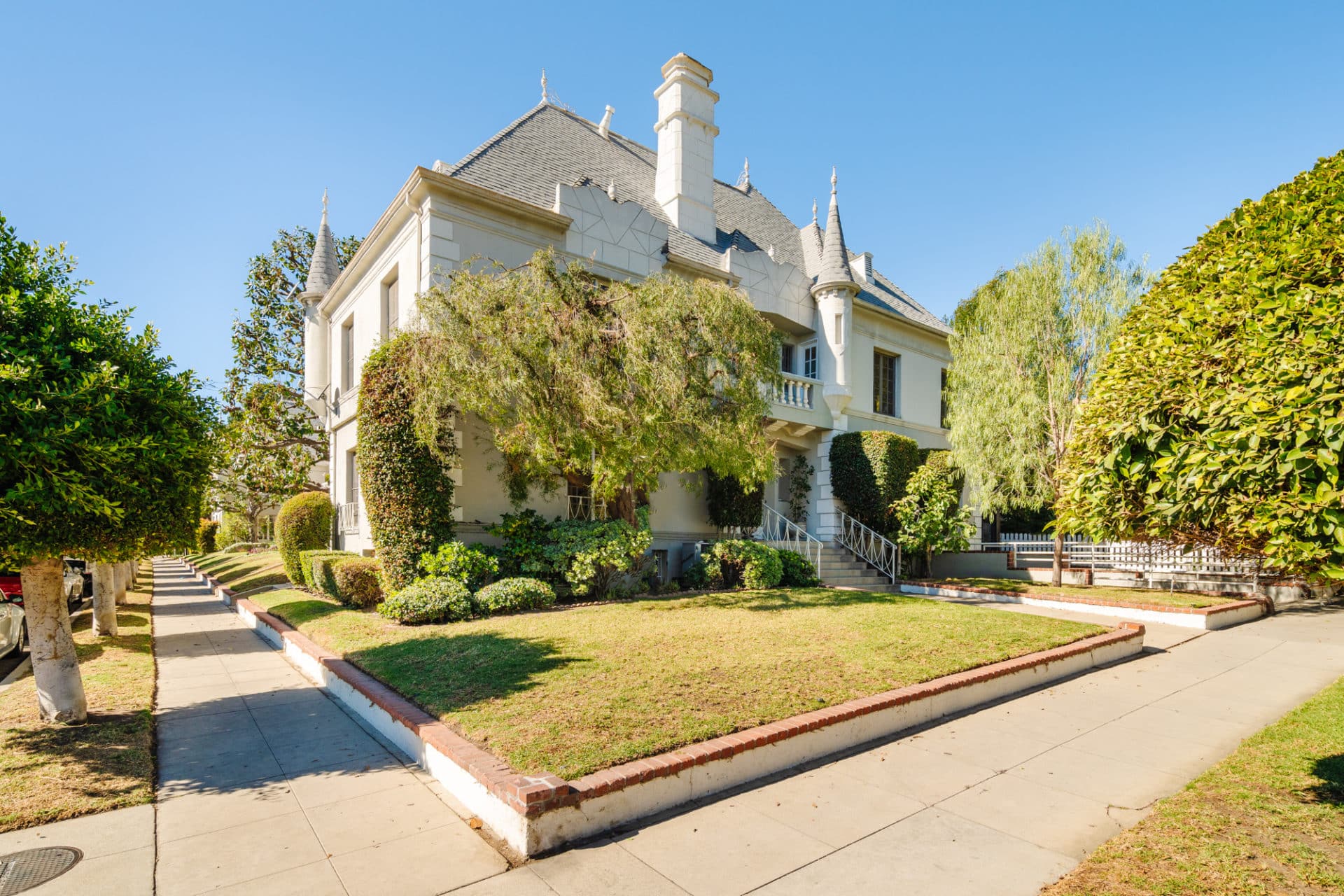 This French Normandy townhome in Walter C. Kings landmark, Chateau Beachwood, was designed in 1937 and was reportedly built by Warner Bros to house their starlets (legend has it, this list includes Greta Garbo, Marlene Deitrich, Madonna and Marilyn Monroe, who is said to have lived in this very unit!) Upon arrival, you are greeted by magical turrets and billowing willow trees.