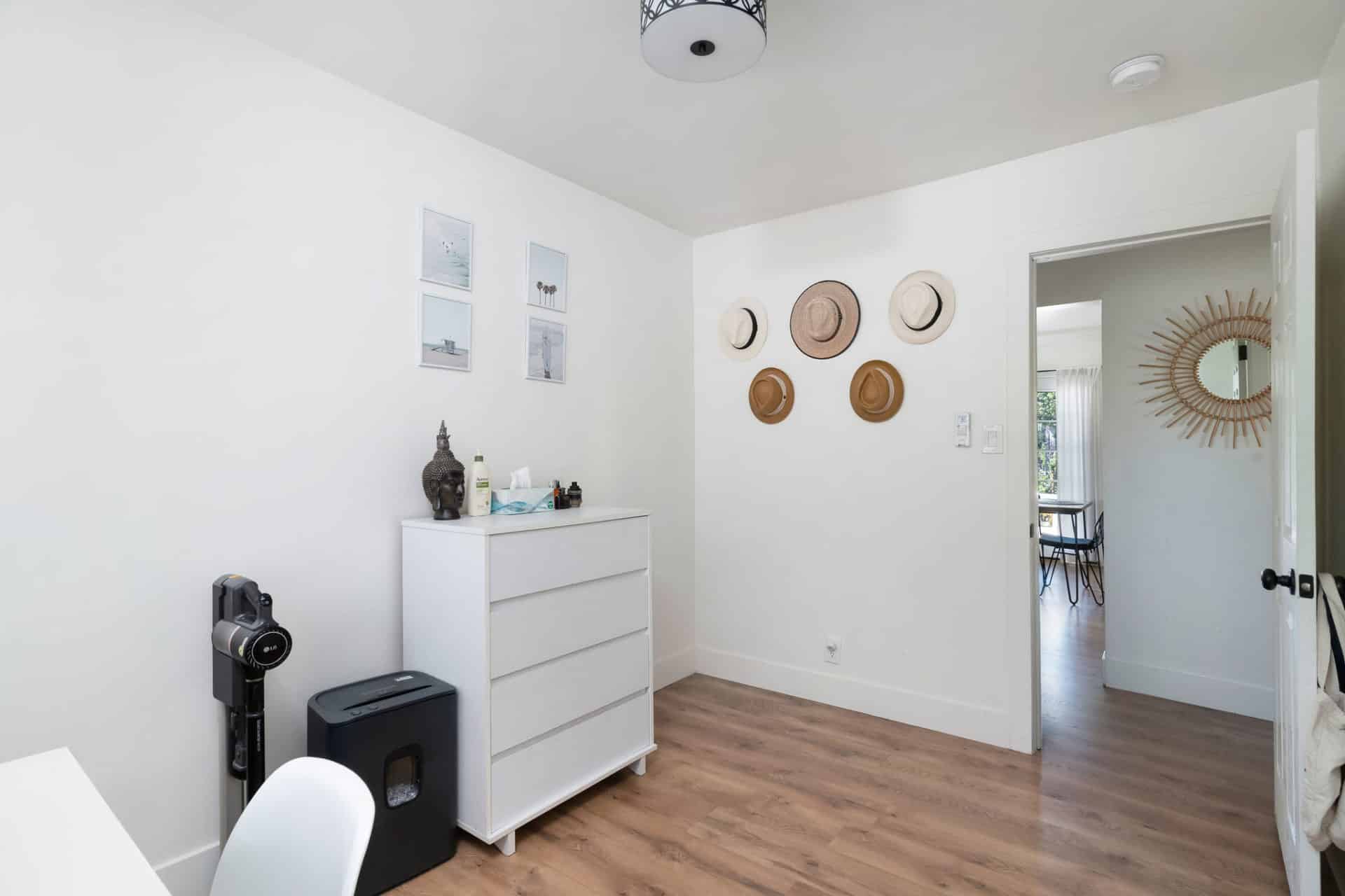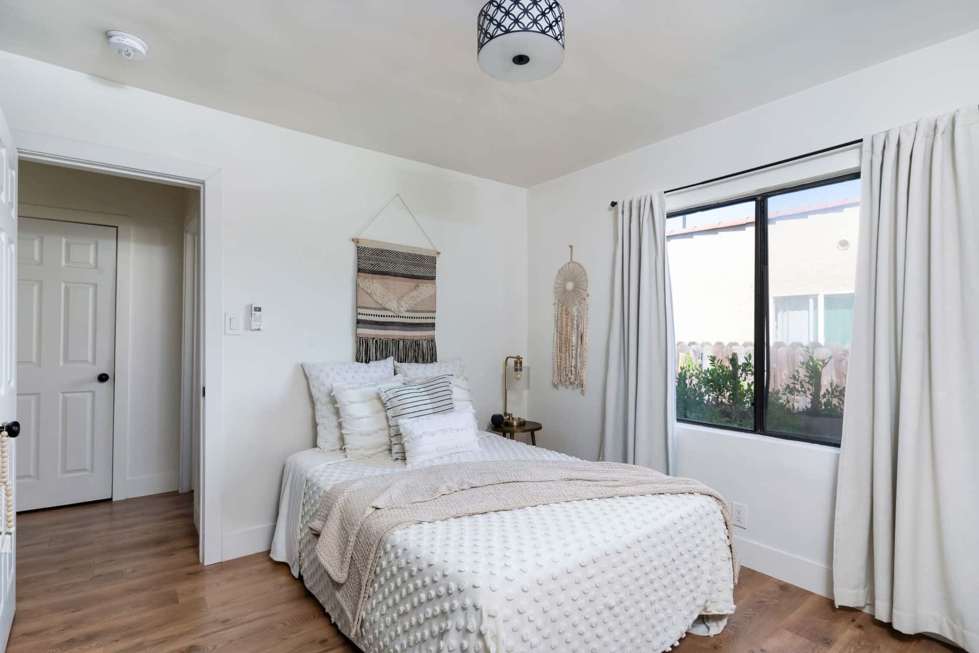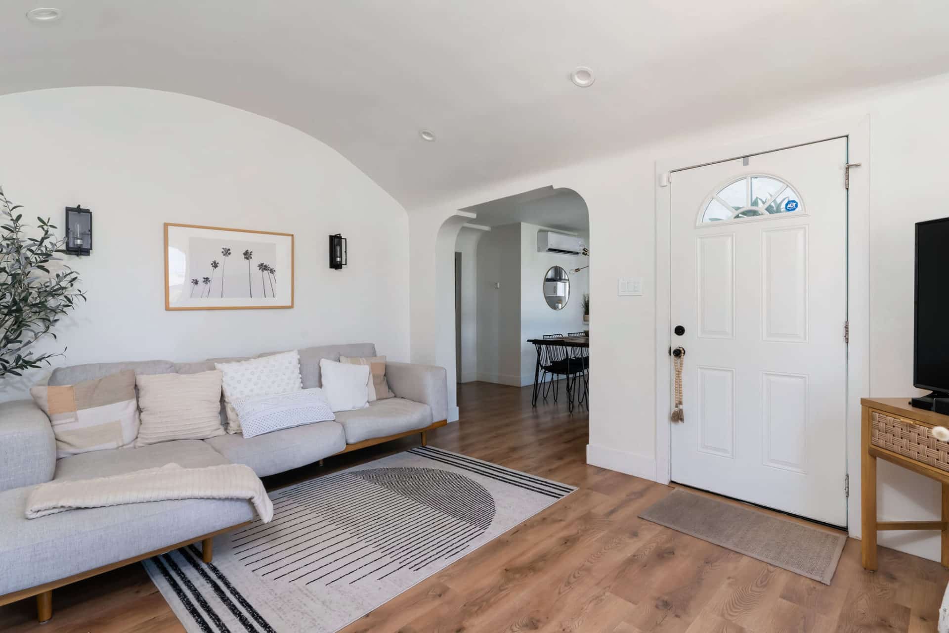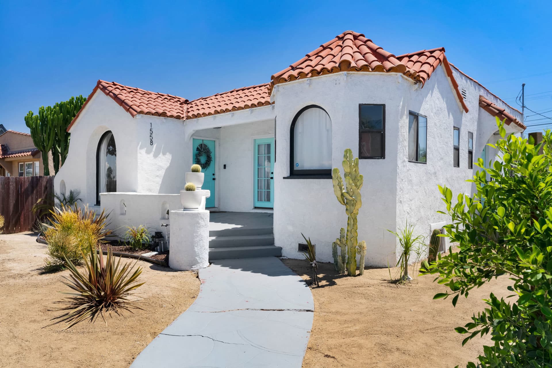 Serene Spanish-style 3bd/2ba bungalow re-designed with function in mind for only $749k! Behind newer fencing and fresh ficus hedges lies a tranquil courtyard curated with drought tolerant DG landscaping and succulents. A winding pathway leads to an oversized front porch with room for seating and french doors from the dining area.