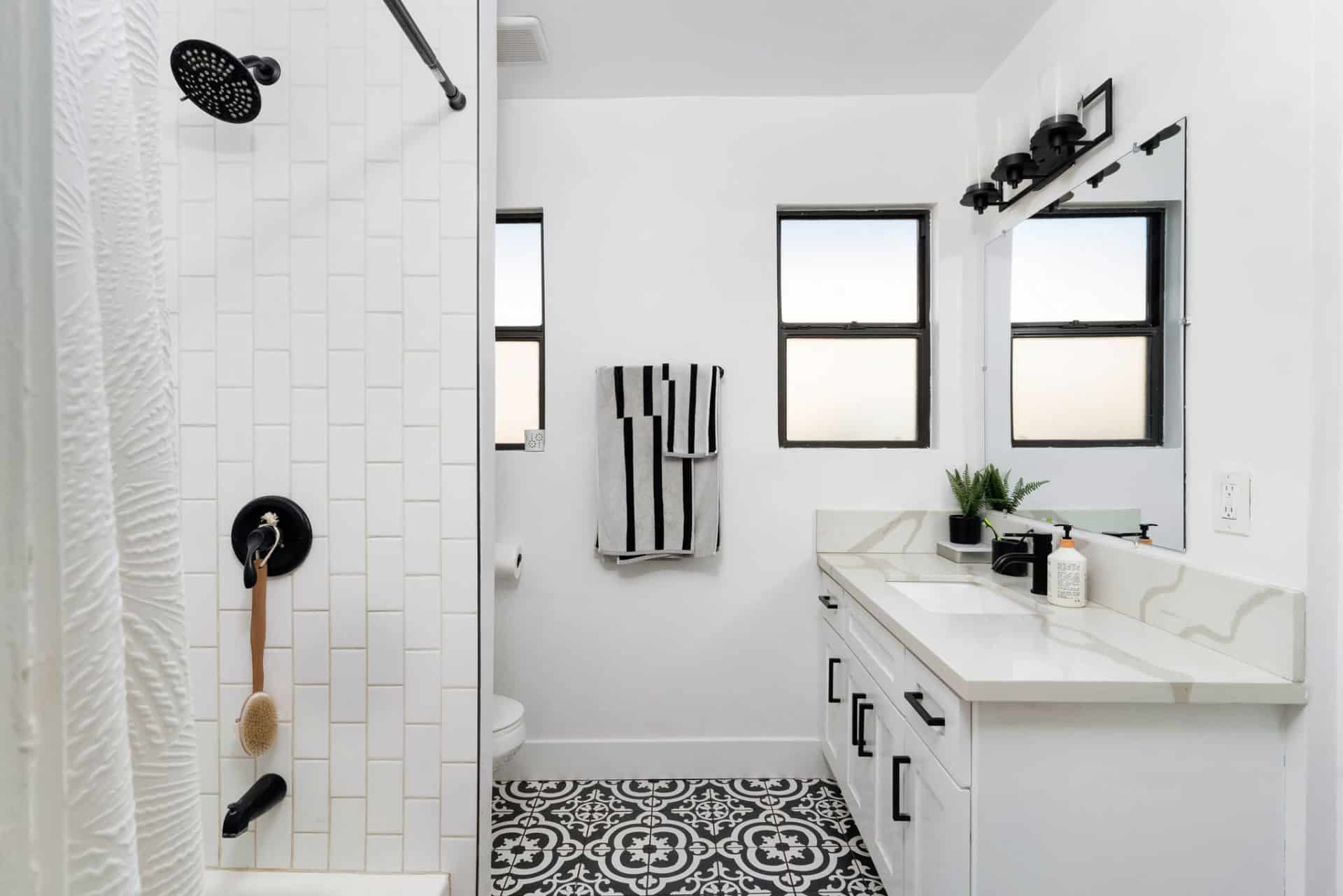 The open floor plan is highlighted by natural light spilling into the plentiful windows throughout.