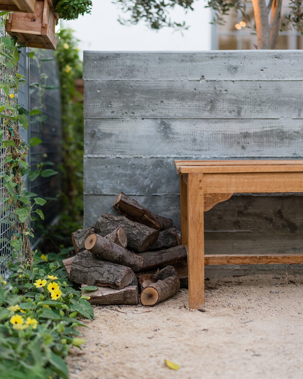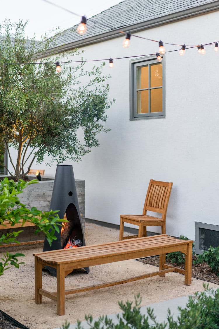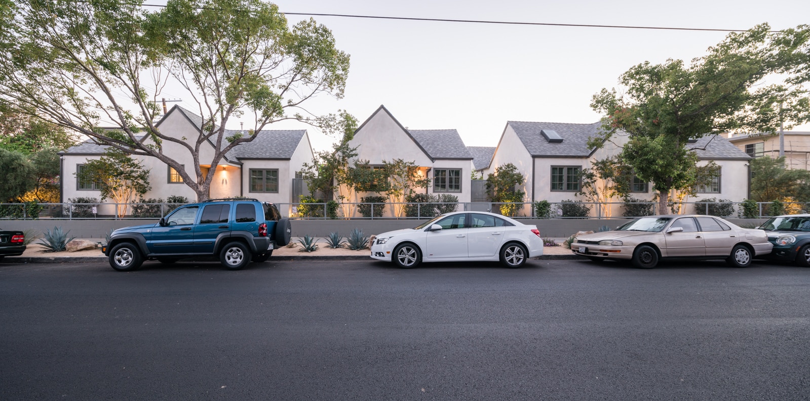 Drought tolerant landscaping alongside mature olive and citrus trees creates a private oasis at the rapidly developing heart of urban Los Angeles.