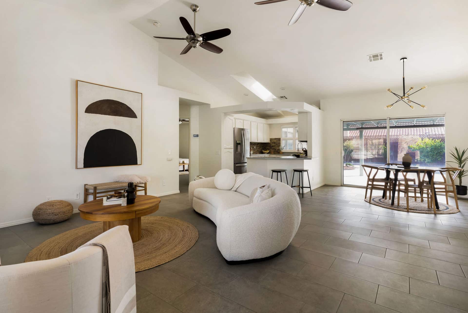 NEW PRICE! Back on the market, second chances do exist! 3BR/2BA haute desert retreat in dreamy Cathedral City! Through curated xeriscaping and an inviting entry patio, step into vaulted ceilings and open-concept living, dining, and kitchen.
