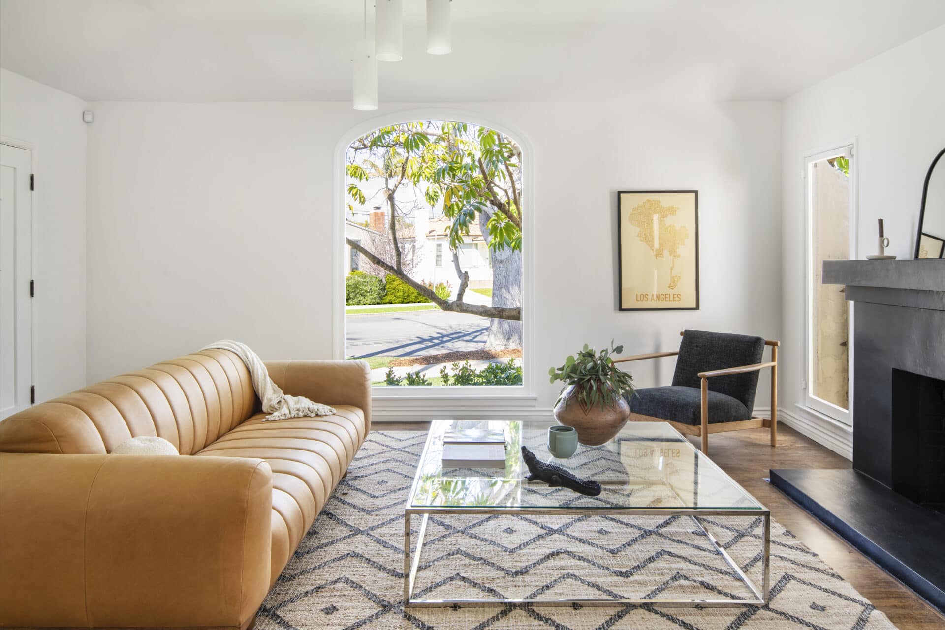 Enter into the charming living room flooded with natural light, complete with a cozy fireplace that sets the tone for relaxation and comfort.