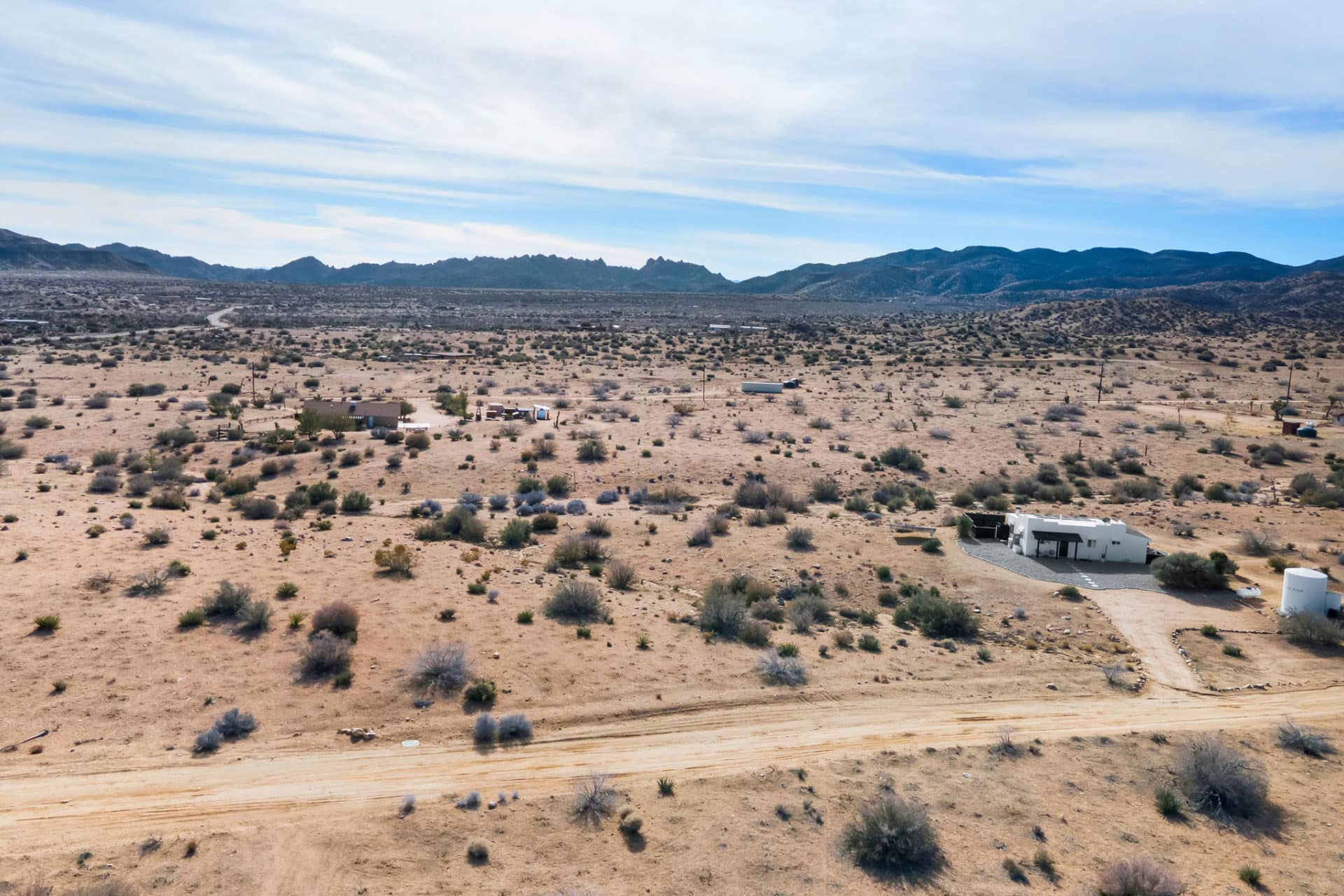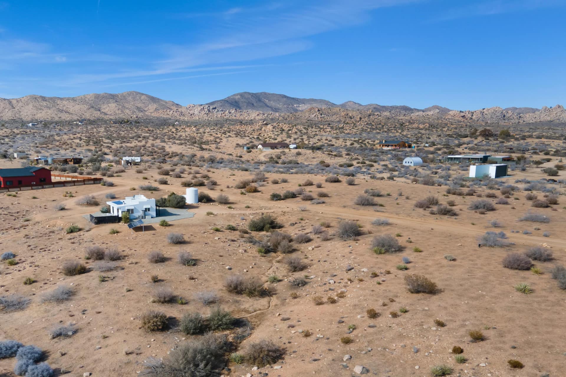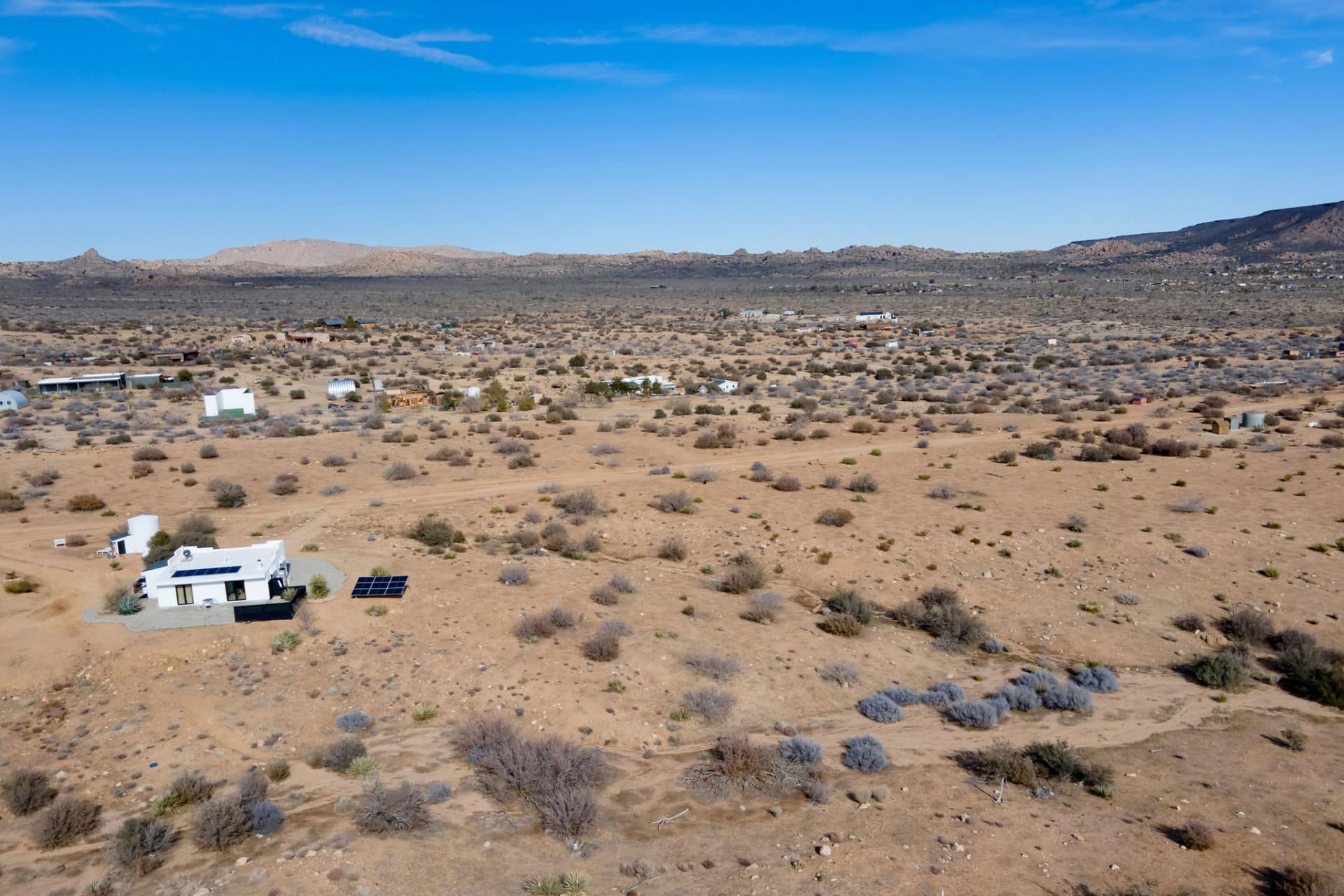 Pioneertown – famous desert home of Hollywood’s Western movie sets, has recaptured its chic with tourist favorite hot spots such as Pappy and Harriet’s, The Station, within minutes to Red Dog Saloon, Pie for the People, Tiny Pony Tavern, Frontier Cafe, La Copine, Crossroads Cafe, Joshua Tree State Park (15 min), and Palm Springs! Experience a sonic healing session inside The Integratron chamber or ride horseback and explore the desert trails offered at several ranches! If you are looking for the perfect location for your “off grid” home, look no further. This 2.54 acre site is located in a prime location, with insta fabulous neighbors Casa Mami nearby. With over 110,000 square feet of land, the opportunities are endless. Well/septic work has already been investigated, reports are in the docs. Water = Well + Haul/Tank. Electric = Solar + Backup generator. Gas = Propane Tank. Sewer = Septic Tank. Come and get your desert spot and get to building!