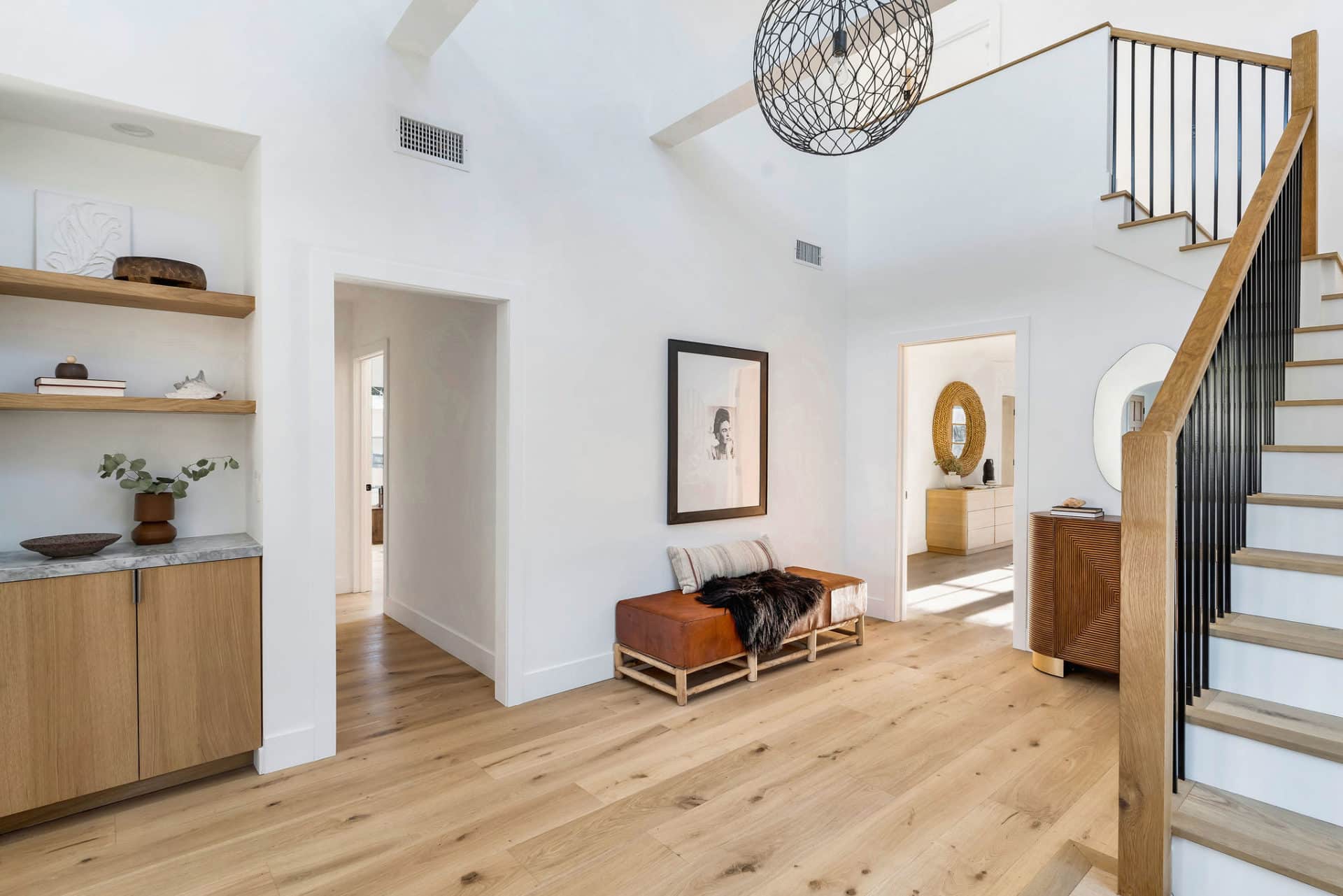 The spacious layout leads you to an atrium with soaring ceilings and built-ins.
