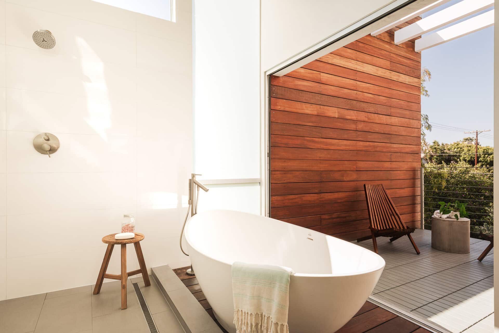 Each bedroom in the main house offers the luxury of a full ensuite bathroom, with the primary suite boasting a private balcony and a lavish bath that includes a walk-in shower and a standalone soaking tub.