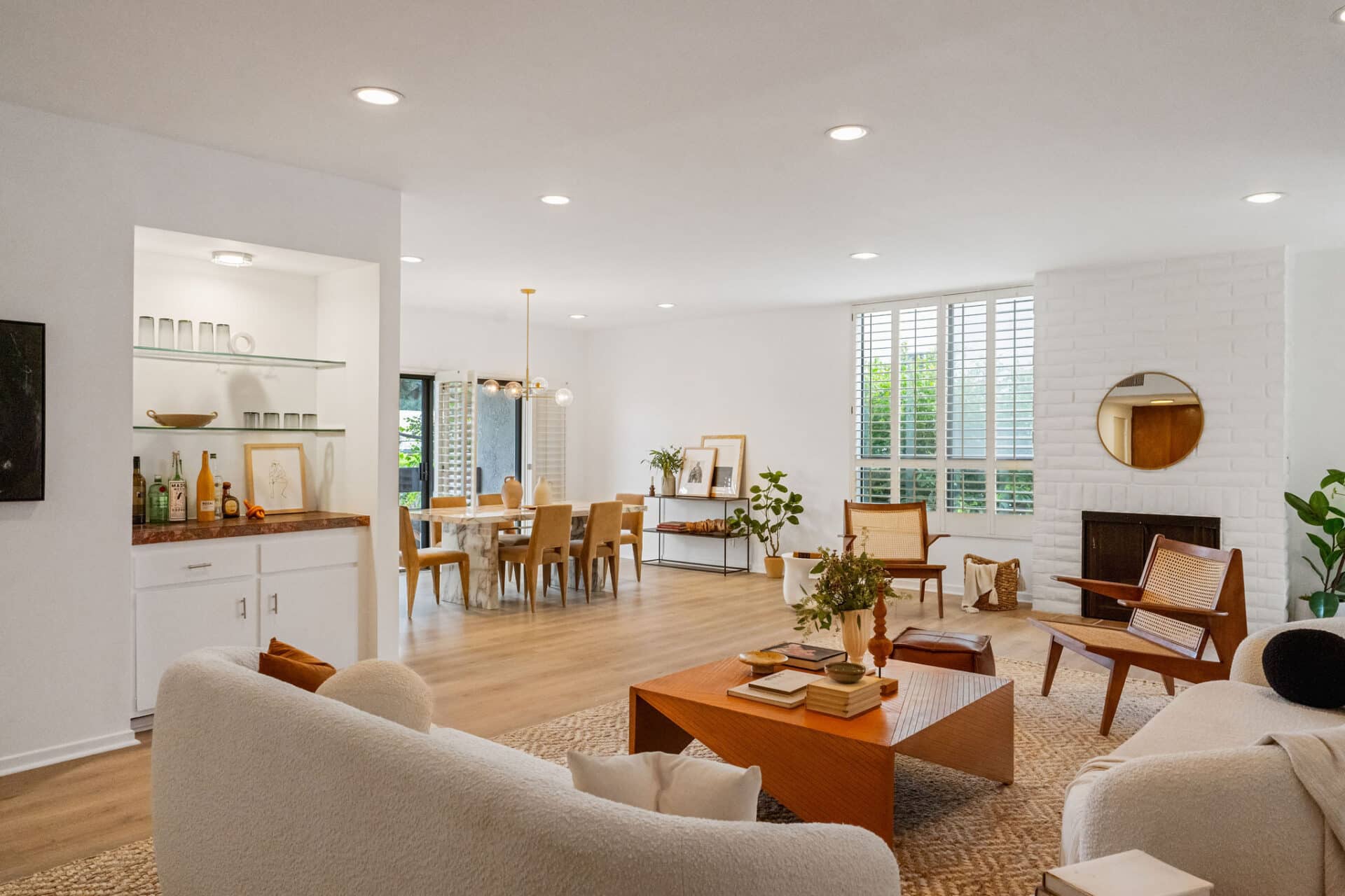 As you step inside, you’re immediately greeted by an abundance of natural light streaming through the walls of windows of the spacious great room.