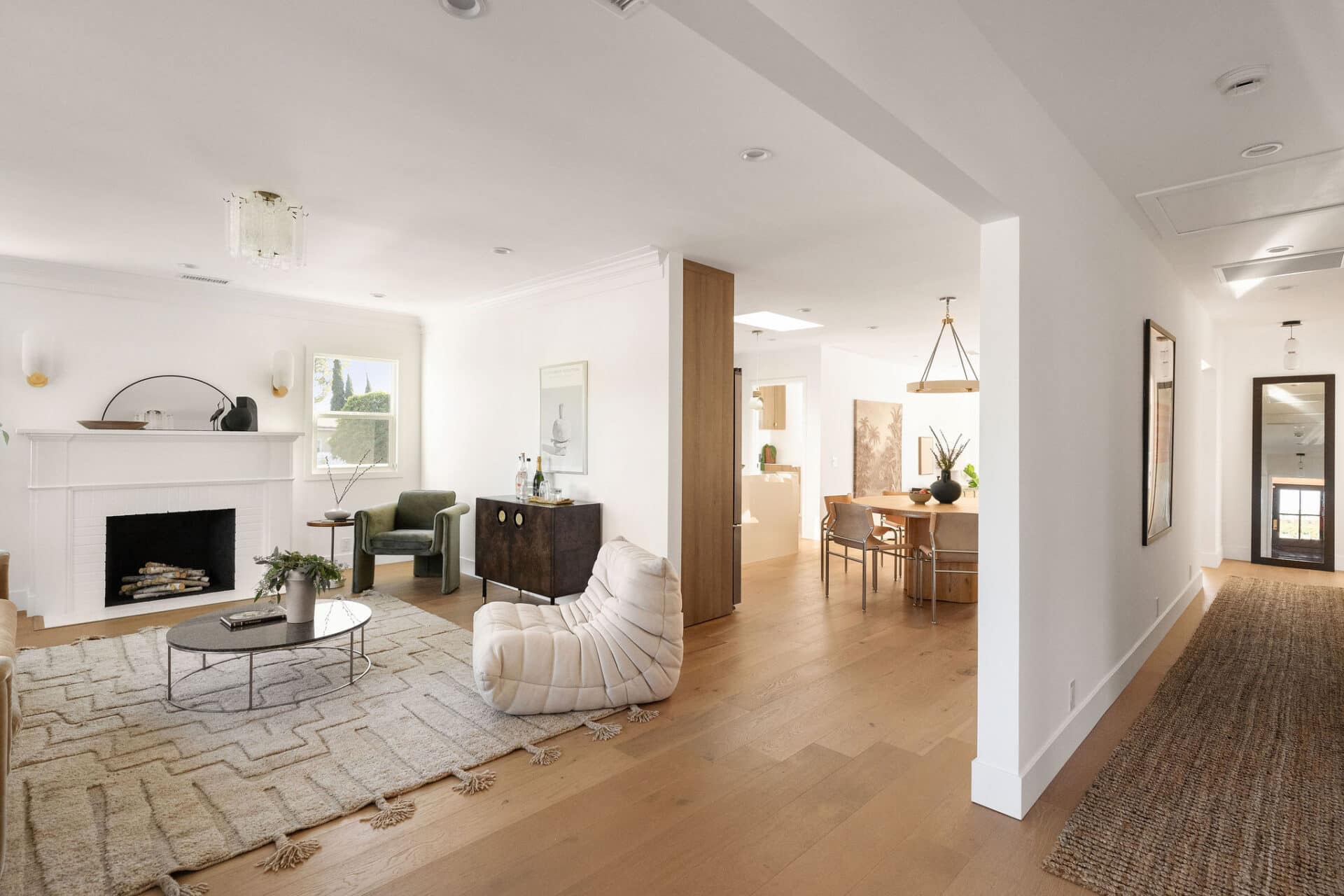 Step inside and be greeted by an open-concept layout that boasts an abundance of natural light accentuating the warmth of the rich hardwood floors and sleek, clean architectural lines. The formal living room is anchored by a bay window, character fireplace and striking Anthropologie light fixtures.