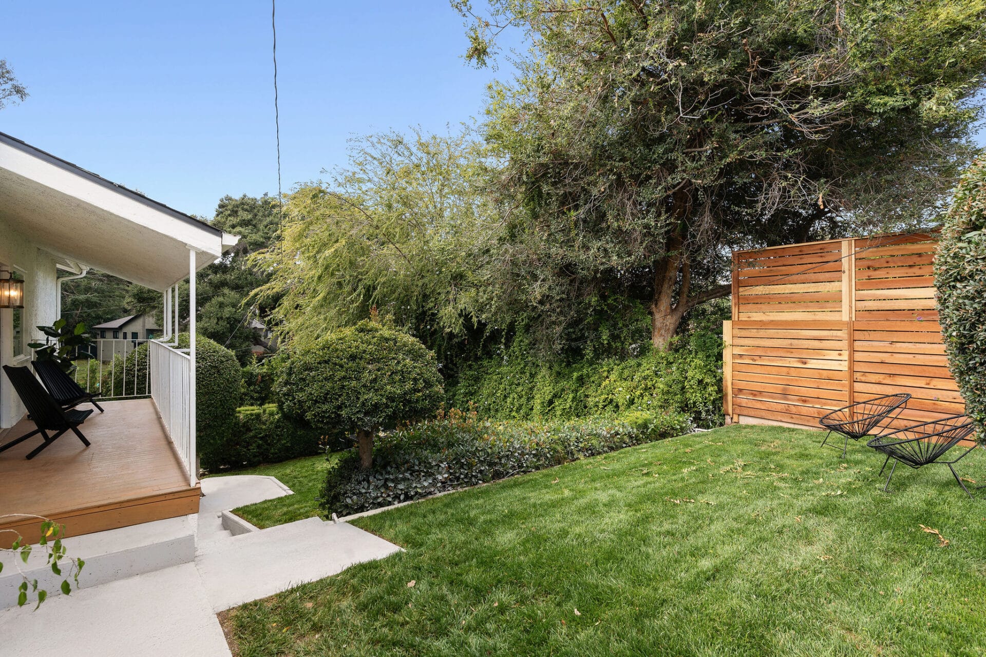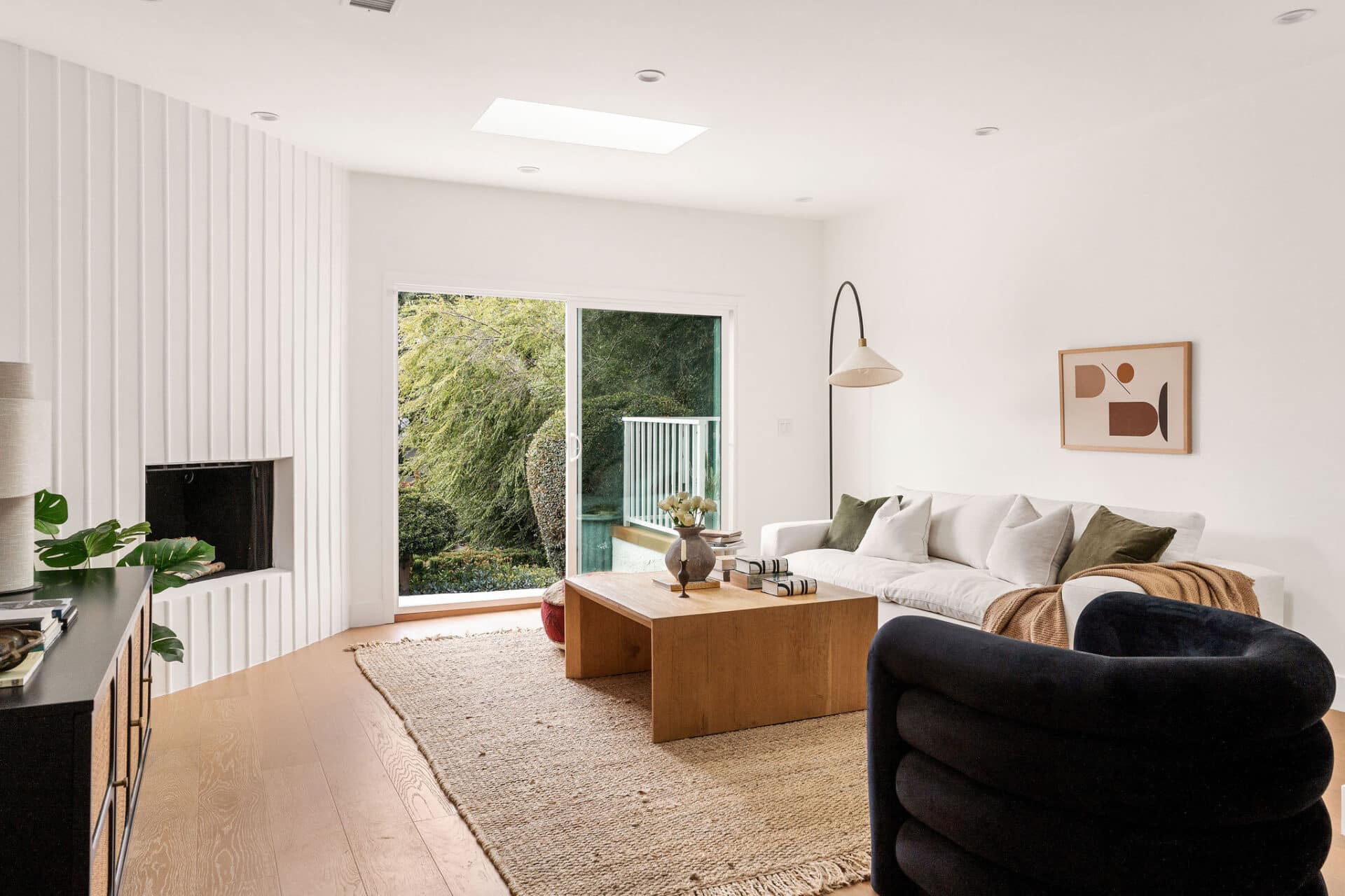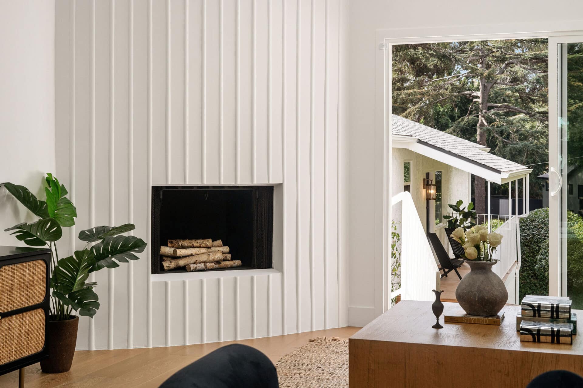 The family room features a modern fireplace and large sliding door to the expansive deck and rolling backyard, making CA indoor outdoor living a reality!