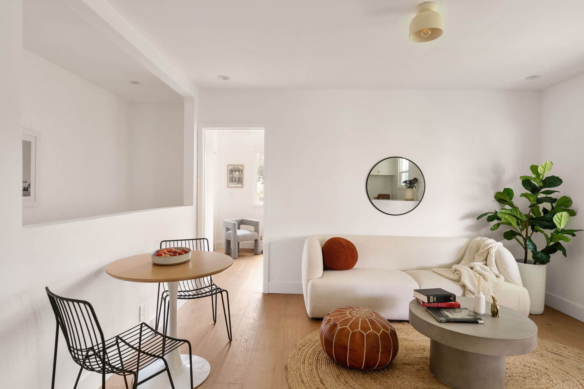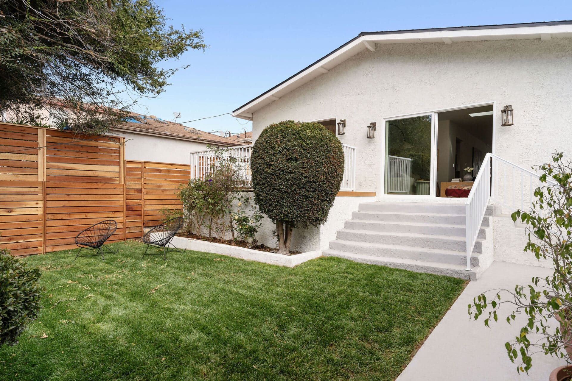 Easy access to the backyard and driveway is through the laundry, off the kitchen, with room for full-size side by side appliances. The guest house is the perfect place for family and friends to stay or even the perfect work from home setup with 2 bedrooms, one on each level, full bath with brushed brass finishes and console sink. Plus, a full kitchen with stainless steel appliances and stone countertops. The backyard offers endless possibilities with ample space for a pool, your dream garden, or even an ADU!