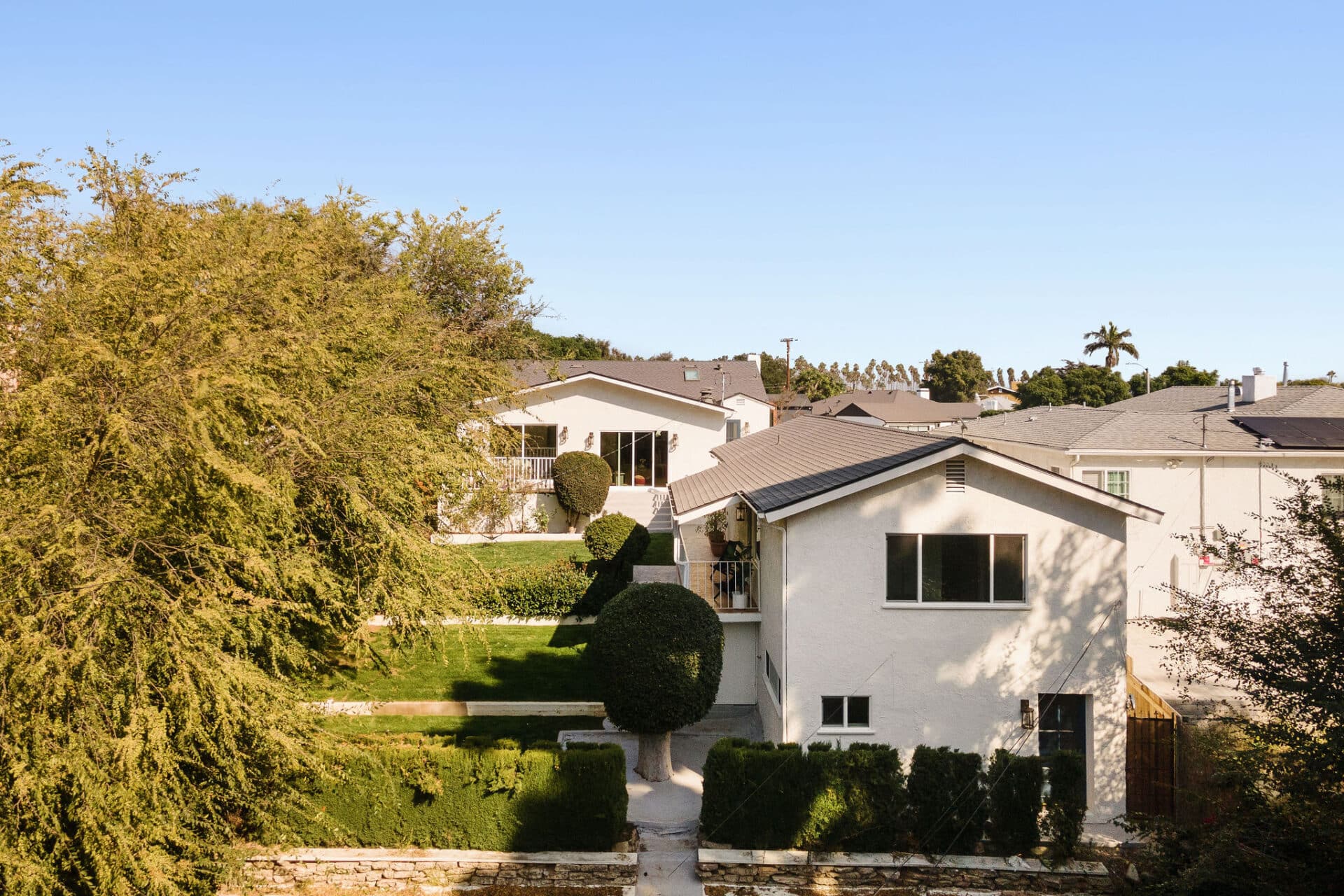 Striking modern cottage in idyllic Windsor Hills! This timelessly elegant 3BD/2BA main house + 2BD/1BA guest house sits on a sprawling lot of over 10,000 sqft!