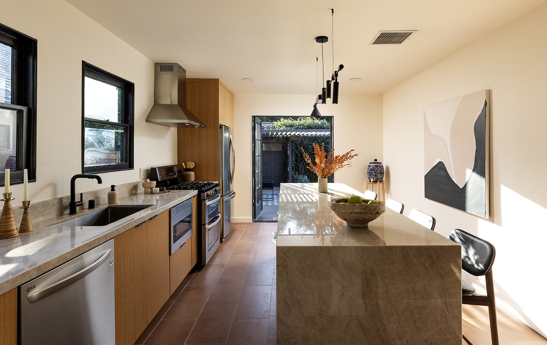 Spend warm summer nights beneath the stars or gather around the fire pit. Outdoor built-in gas grill adjoins al fresco dining under the trellis–providing welcome respite from the hustle and bustle of city life. Pack your bags–your dream home awaits! Located in the heart of Atwater Village with an abundance of boutiques and trendy restaurants like Dune, Proof Bakery, Bon Vivant, and the Village Bakery. Renovation by LA-based design team OWIU. Welcome home!
