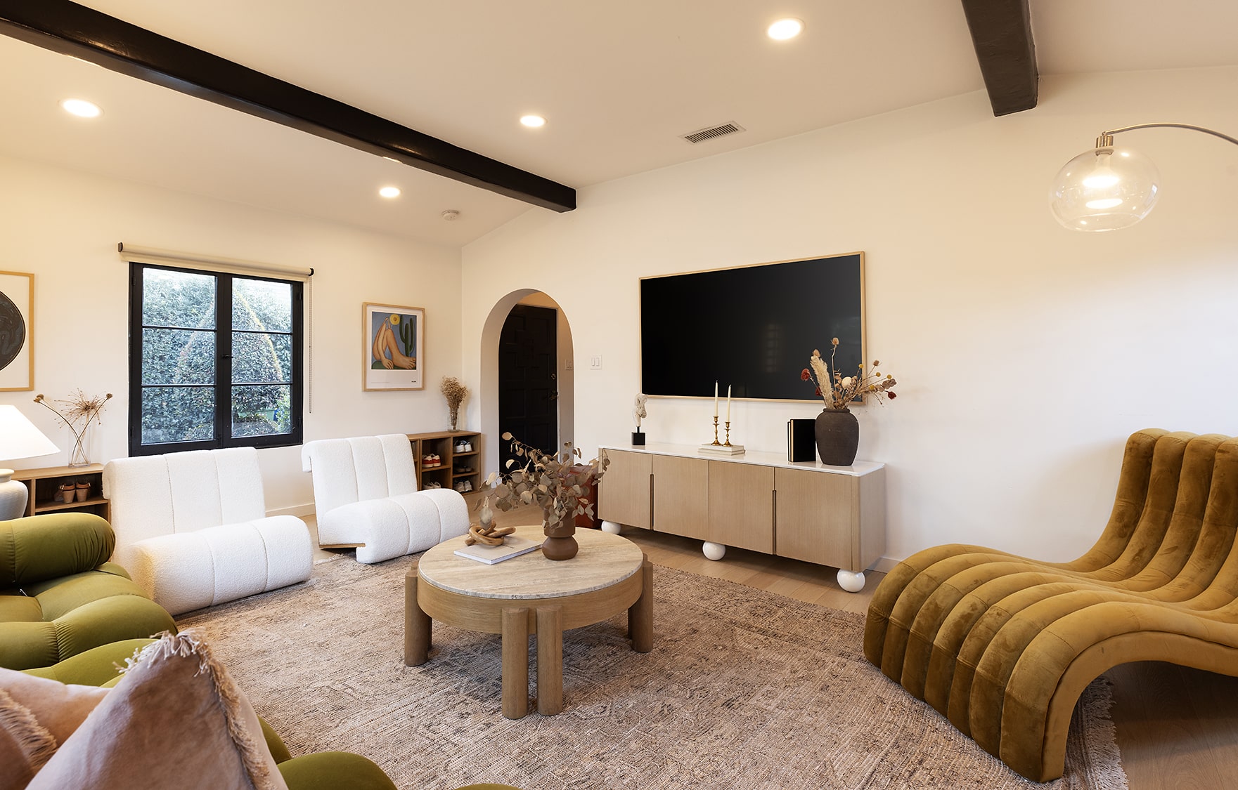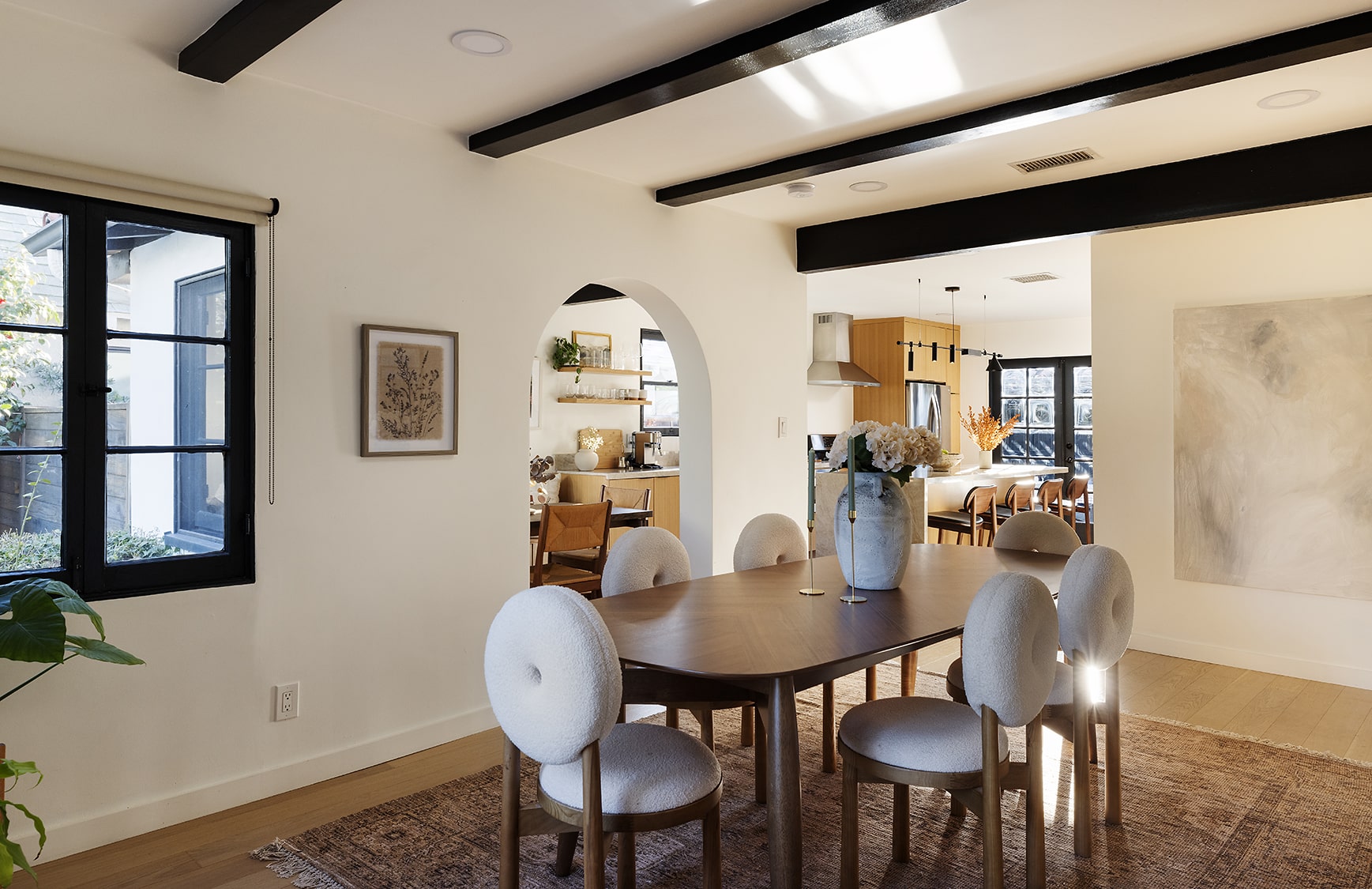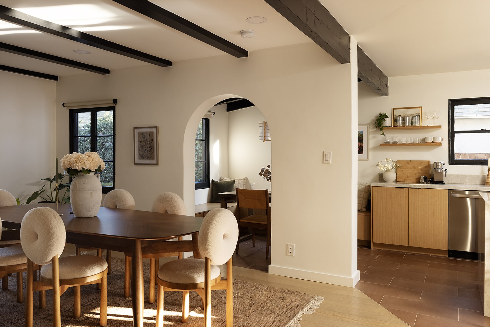 Fall in love with this romantic Spanish poolside retreat in coveted Atwater Village! Step through the character archways to an oversized and sunsplashed living room featuring original windows, beamed ceilings, and fresh white washed oak floors. Dining room also boasts emotional details, including beamed ceilings and tons of windows, perfect for elegant dinner parties and holiday dining. Dining opens to the newly renovated kitchen boasting Taj Mahal Quartzite counters, oak cabinetry, LG appliance package, charming built-in nook, and french door access to the matchless sprawling yard and pool.
