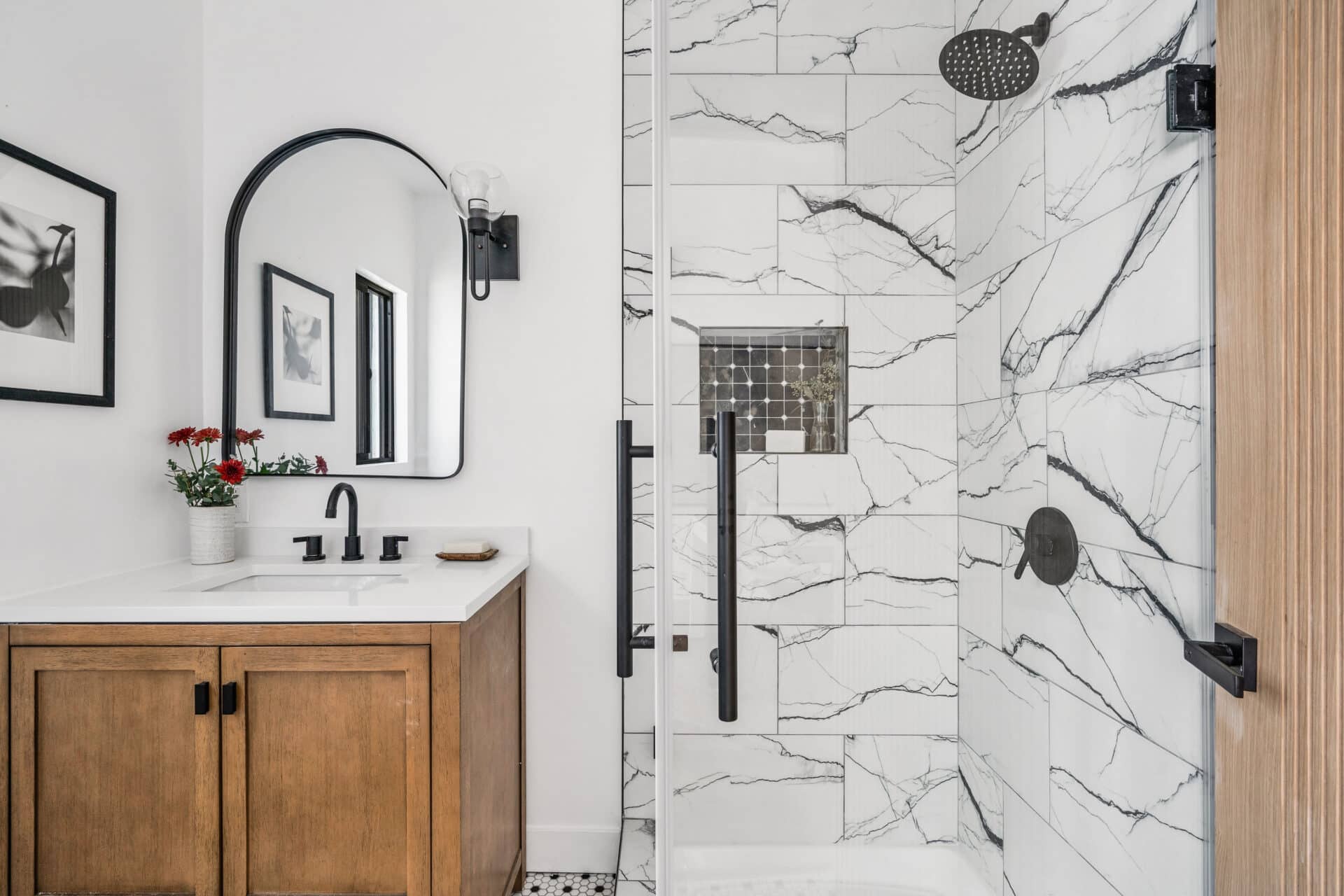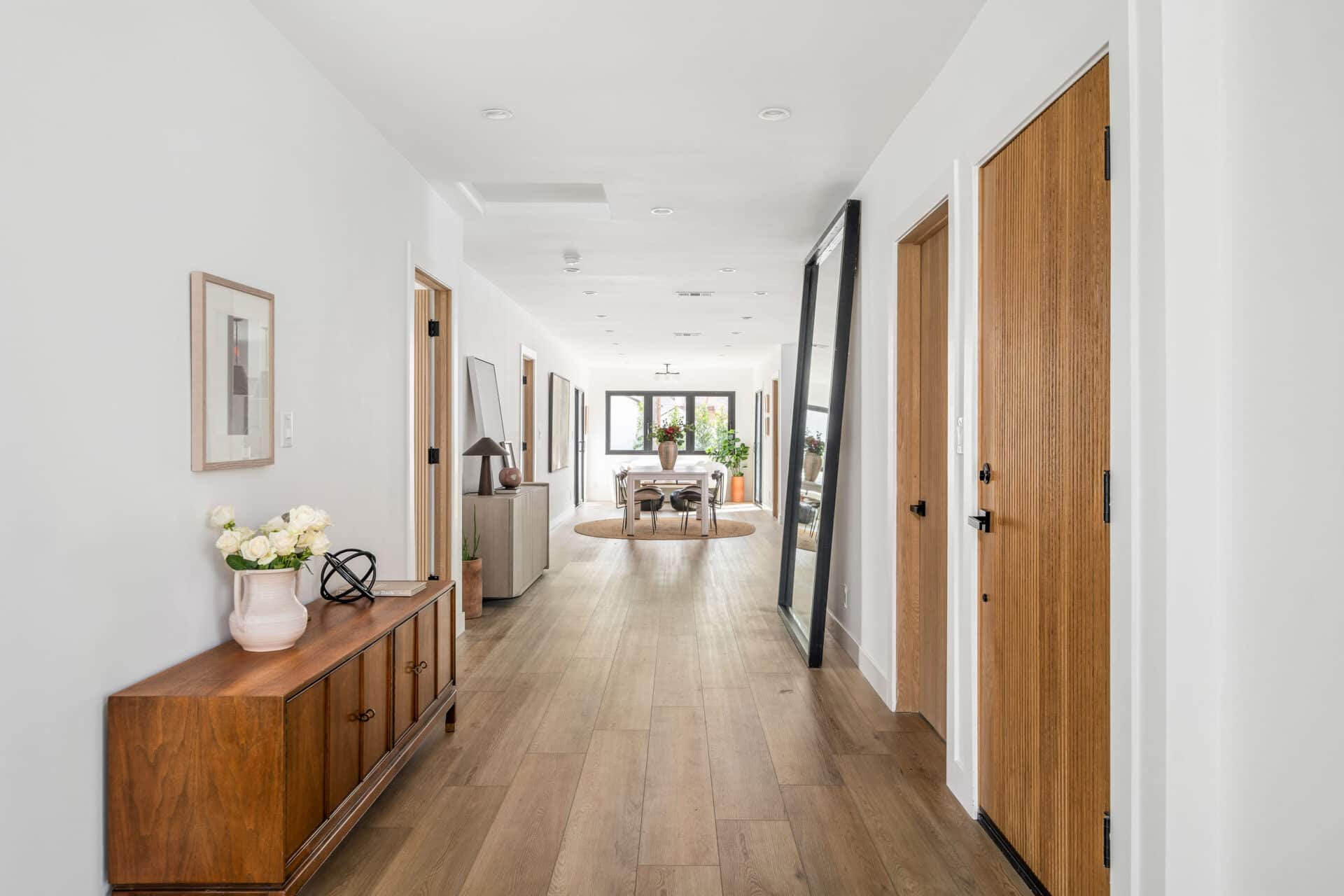 Feature walls line the entry, providing the perfect palate for your handpicked art and favorite credenza.
