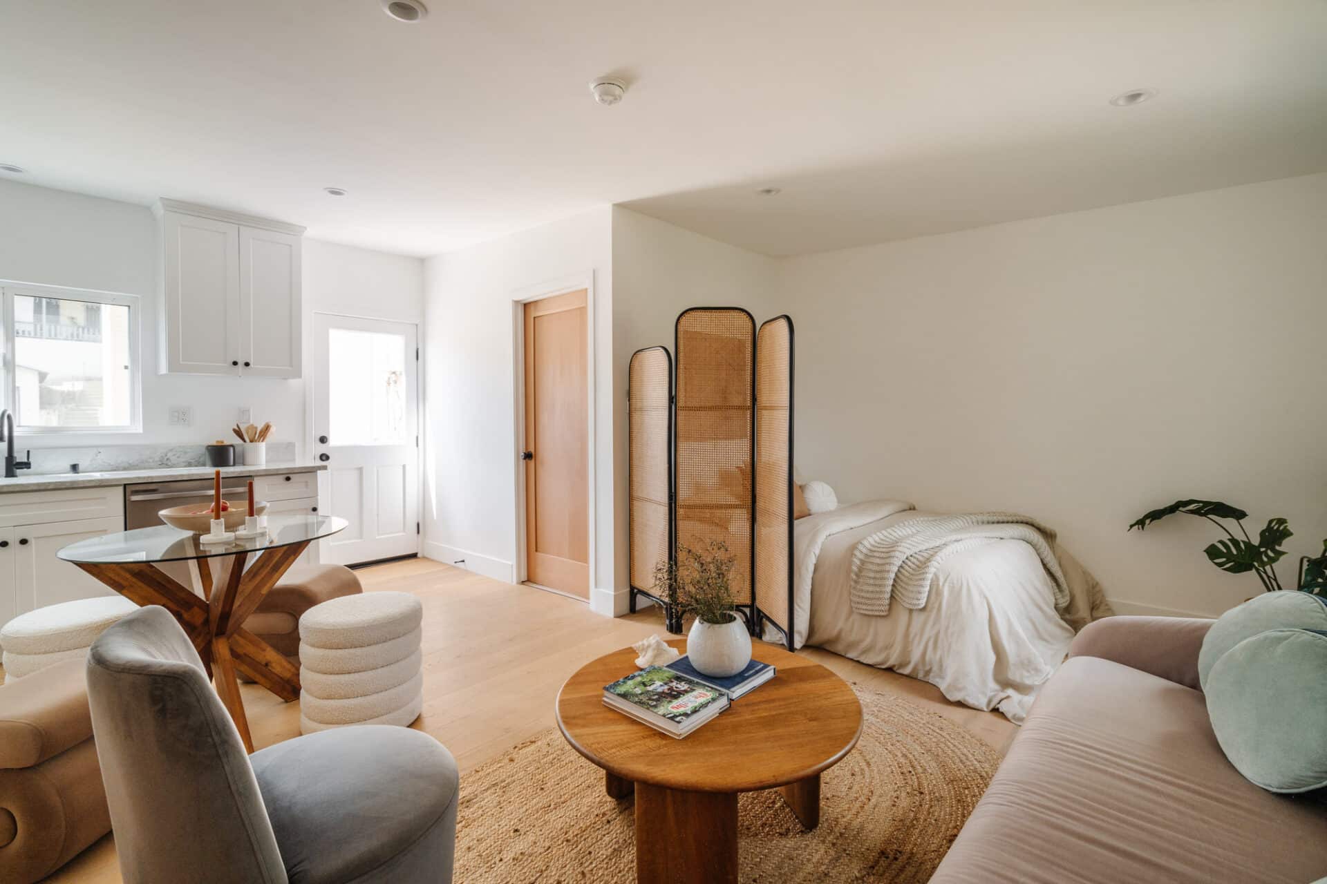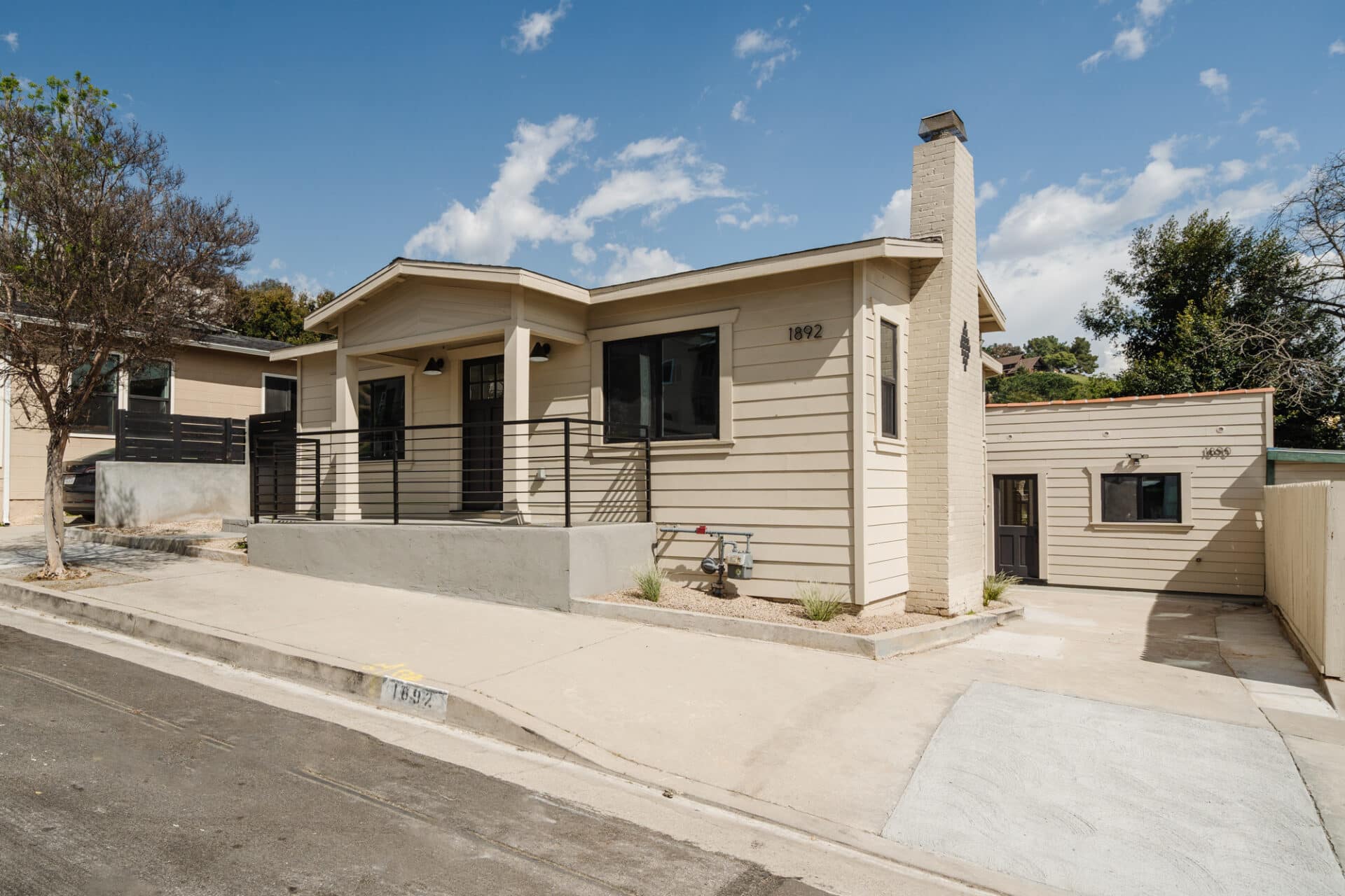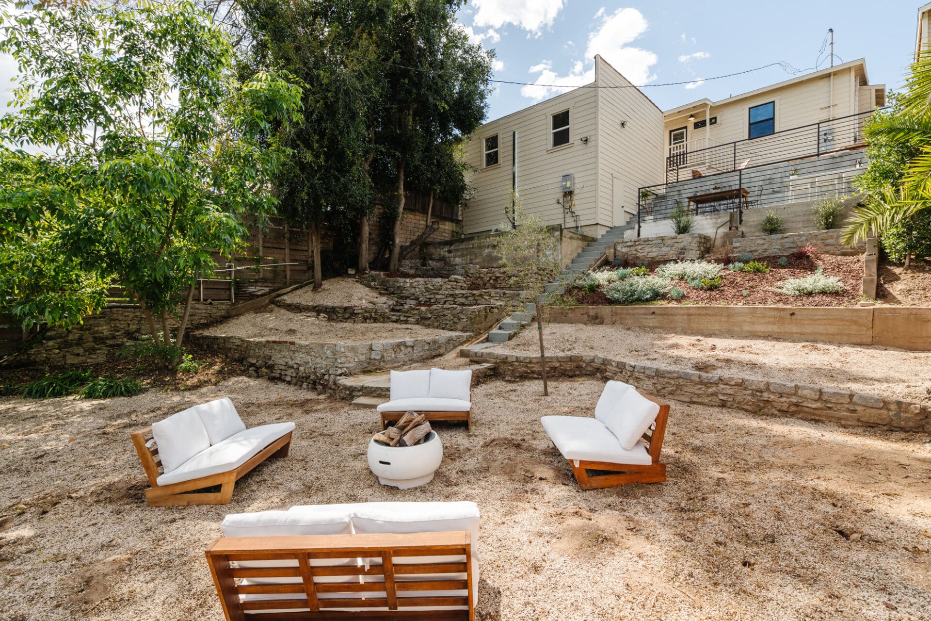 The newly-built studio ADU offers plenty of space for bedroom, living and dining areas as well as a dazzling kitchen with marble counters + backsplash, stainless steel appliances, open shelving and sleek matte black fixtures and stylish bathroom with marble tile flooring and shower clad in stacked matte subway tile. Main house and ADU have their own stackable laundry closets. Multi-tiered outdoor oasis features many levels of entertaining space and a world of possibilities for you to grow your dream garden, harvest your own produce or put in a grassy yard below! Main house measured at 750 sq ft, ADU is 324 sq ft.