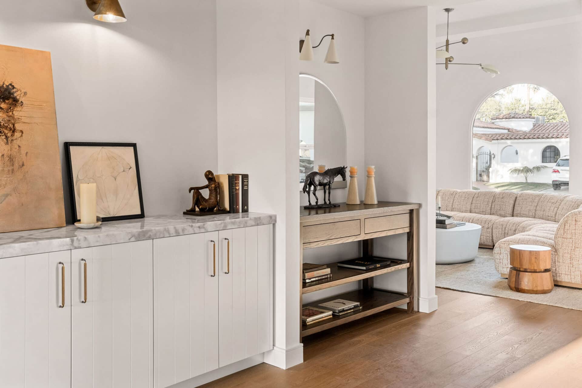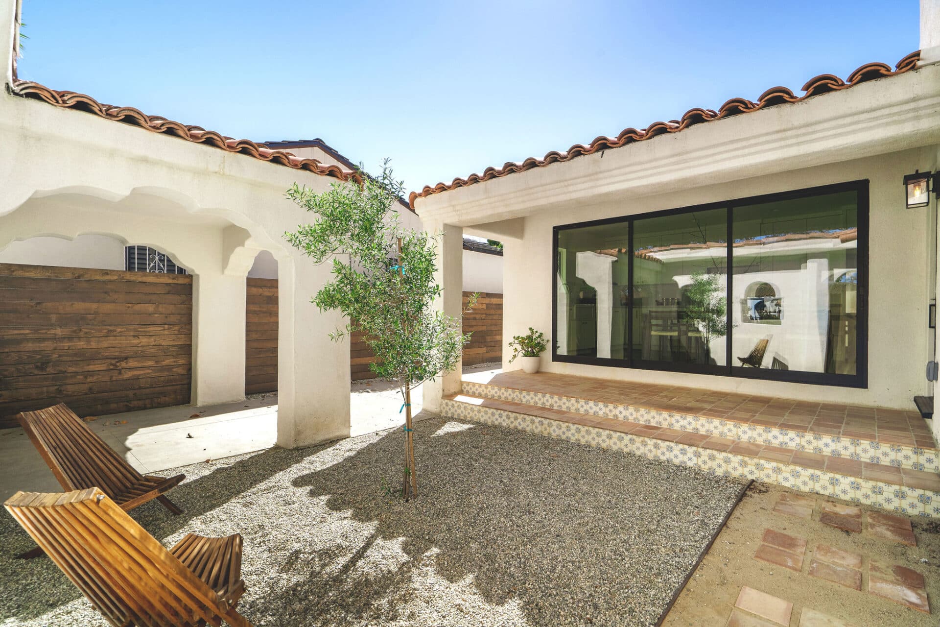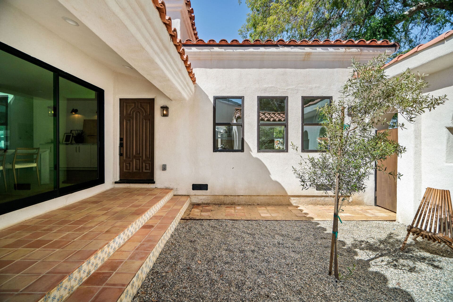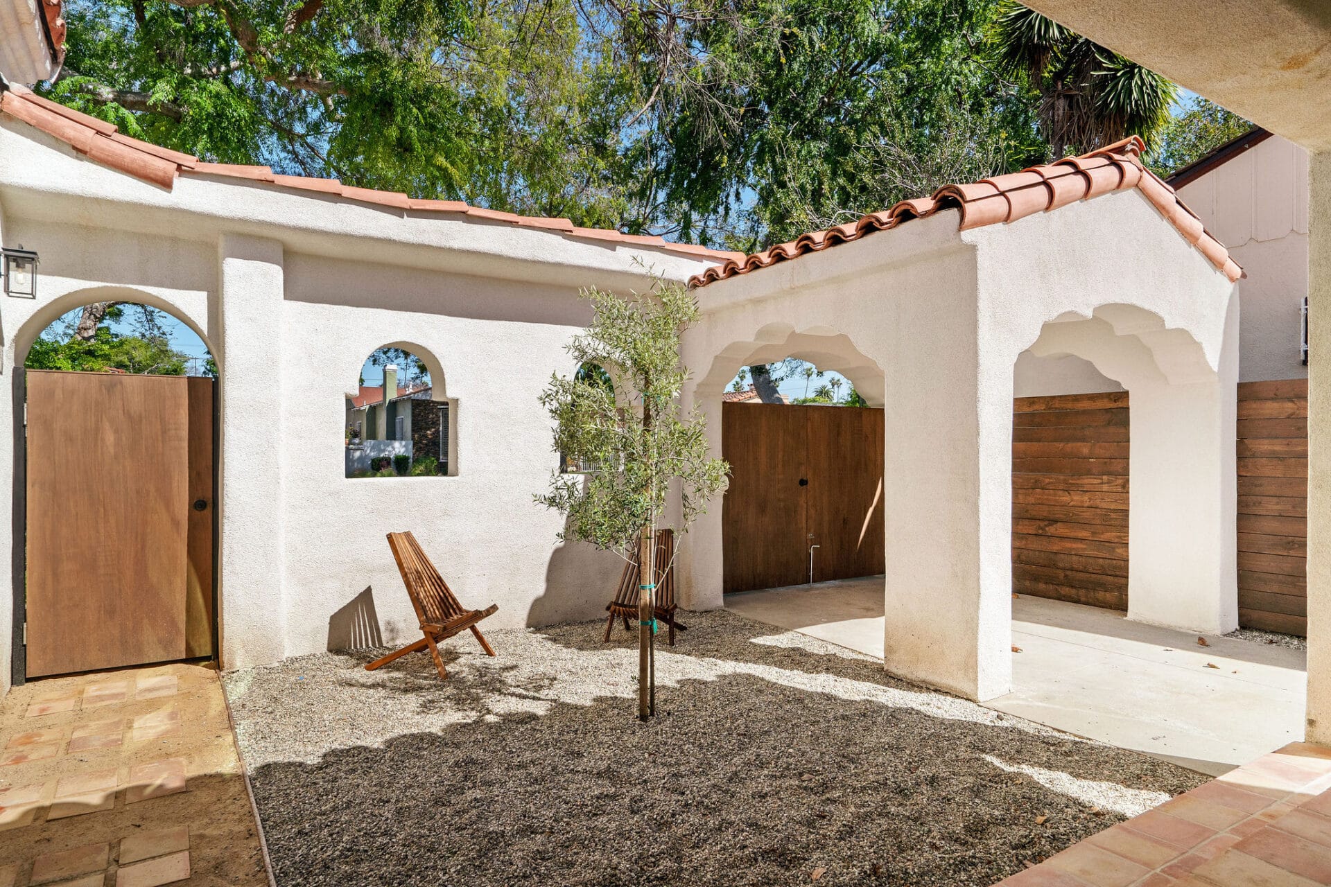 Welcome to this enchanted Spanish oasis nestled in the heart of Leimert Park. Experience a true jaw-dropping moment as you approach this meticulously crafted residence which offers a blend of traditional charm and contemporary luxury. As you step through the custom front gate, you are greeted by an inviting interior courtyard, a hallmark of Spanish architecture, perfect for outdoor gatherings or peaceful relaxation. Designer tiles embedded with traditional saltillo tiles lead to a hand-carved mahogany door that opens up to an entry adorned with custom built-in cabinetry and custom lighting. Every detail has been carefully curated, from the white oak engineered hardwood floors to the Mexican handcrafted saltillo tile on the front porch, evoking a sense of warmth and authenticity.