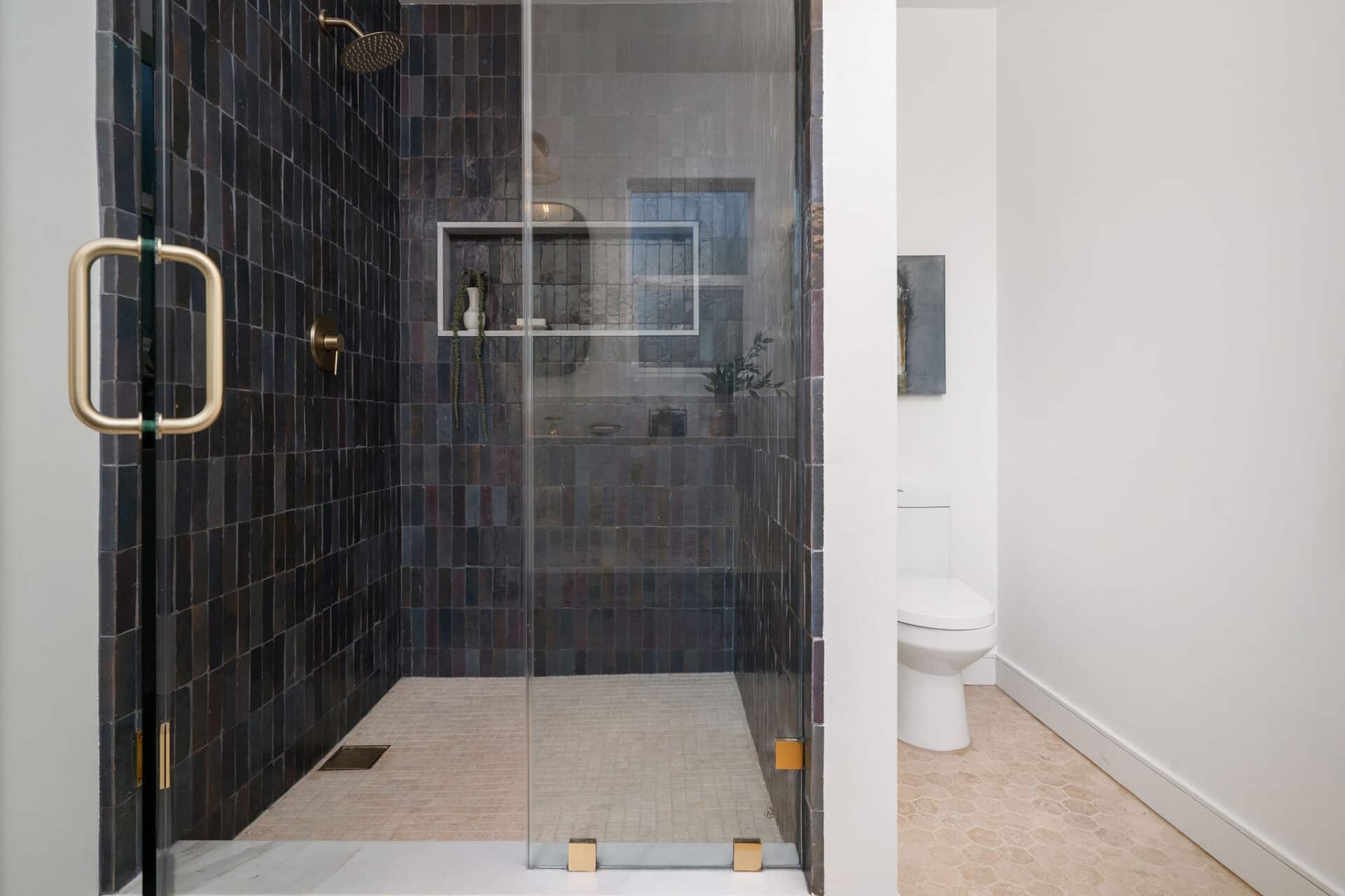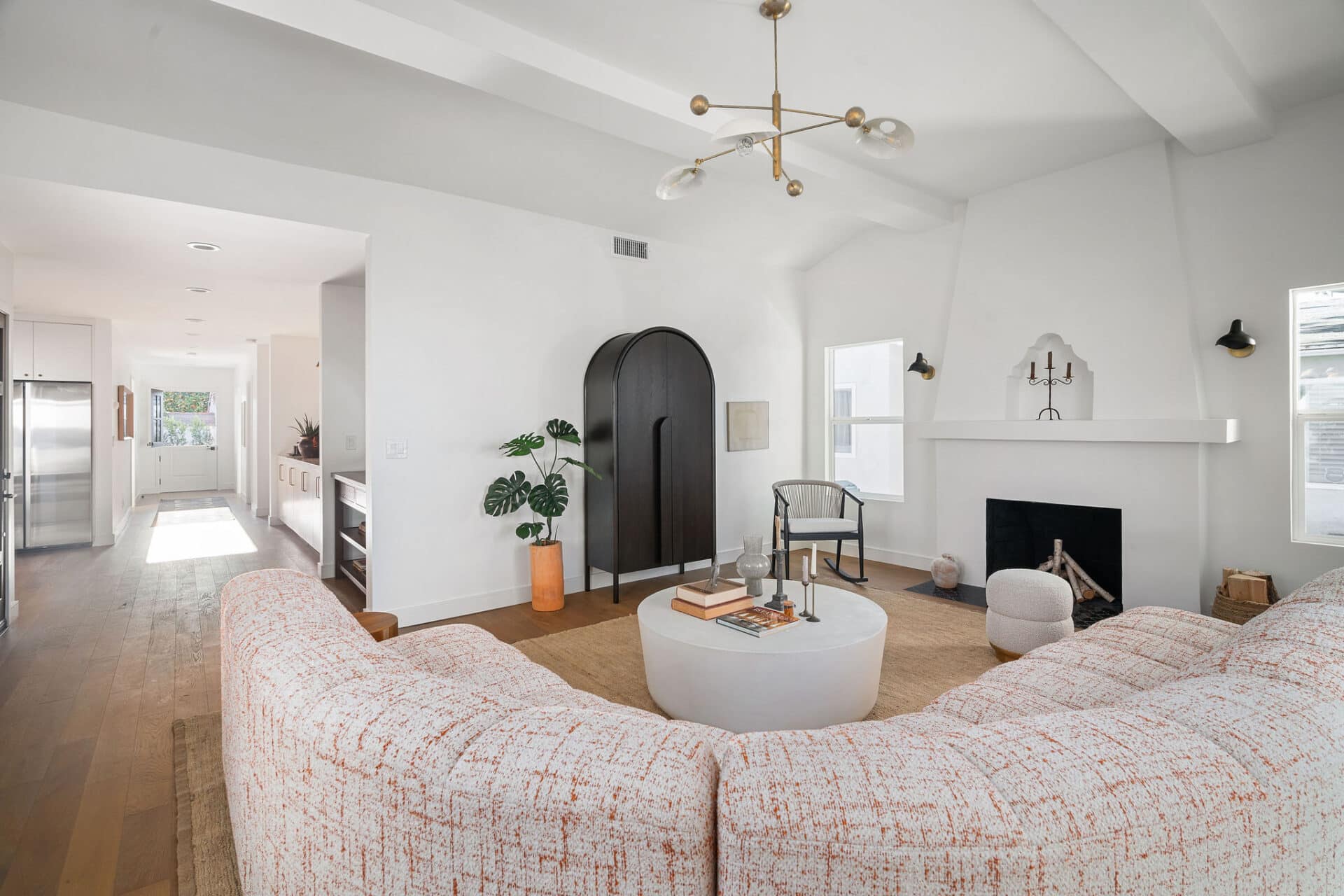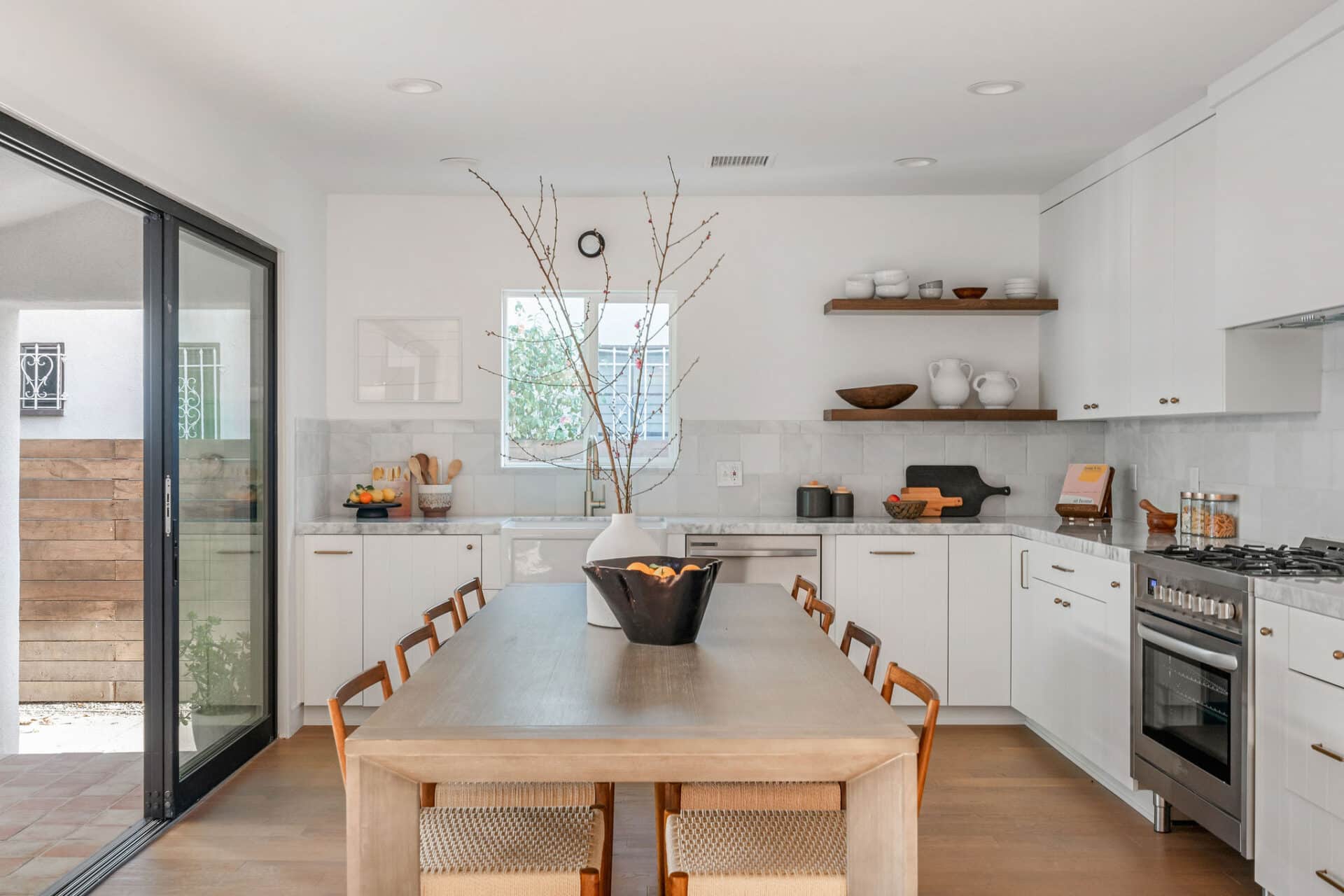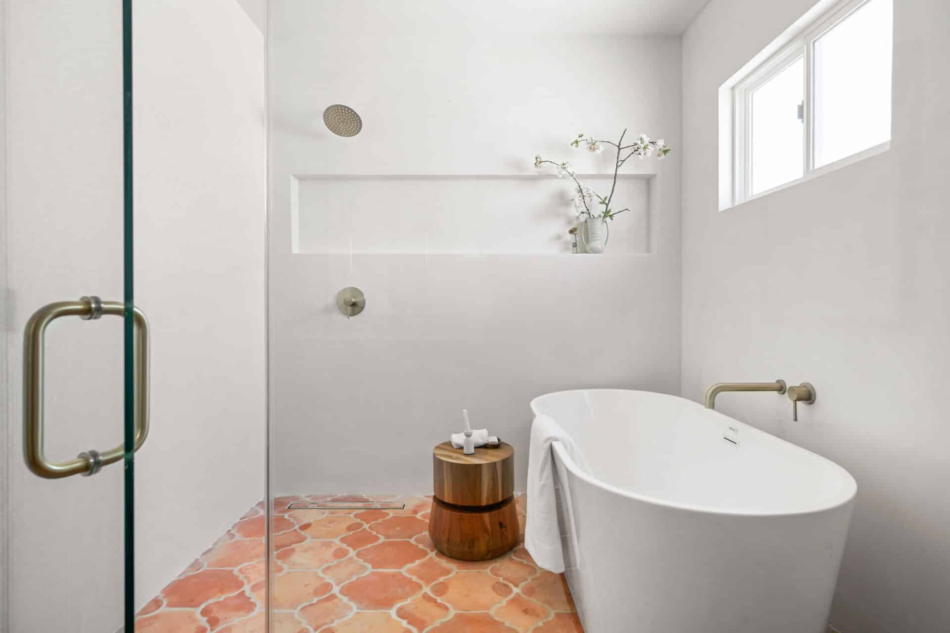 The kitchen is a chef’s dream, showcasing Kelly Wearstler sconces, custom wood cabinetry, and Bianco Neve marble countertops complemented by a custom chiseled calacatta backsplash. Samsung appliances add both style and functionality to this culinary haven. Indulge in relaxation in the primary bedroom en-suite boasting a walk-in closet. The bathroom features Italian Navona travertine flooring, handmade Moroccan zellige tile in the oversized shower, and Bianco Lasa marble counters. Kohler faucets add a touch of refinement to the space. Two additional ample-sized bedrooms complete this stunning home. Special features include Mexican handcrafted saltillo tile flooring in the hallway bath, plaster finish walls, new interior paint, and custom lighting throughout, enhancing the ambiance of every room. Upgrades include all new electrical wiring, a 200-amp electrical panel, new plumbing, new sewer line, new tankless water heater, fully irrigated landscaping, and outdoor lights. Outside, the enchanting backyard oasis awaits, complete with a custom deck, perfect for al fresco dining or enjoying the California sun. Stamped ADU plans plus permits to convert the garage into a studio ADU will be delivered with this sale.
