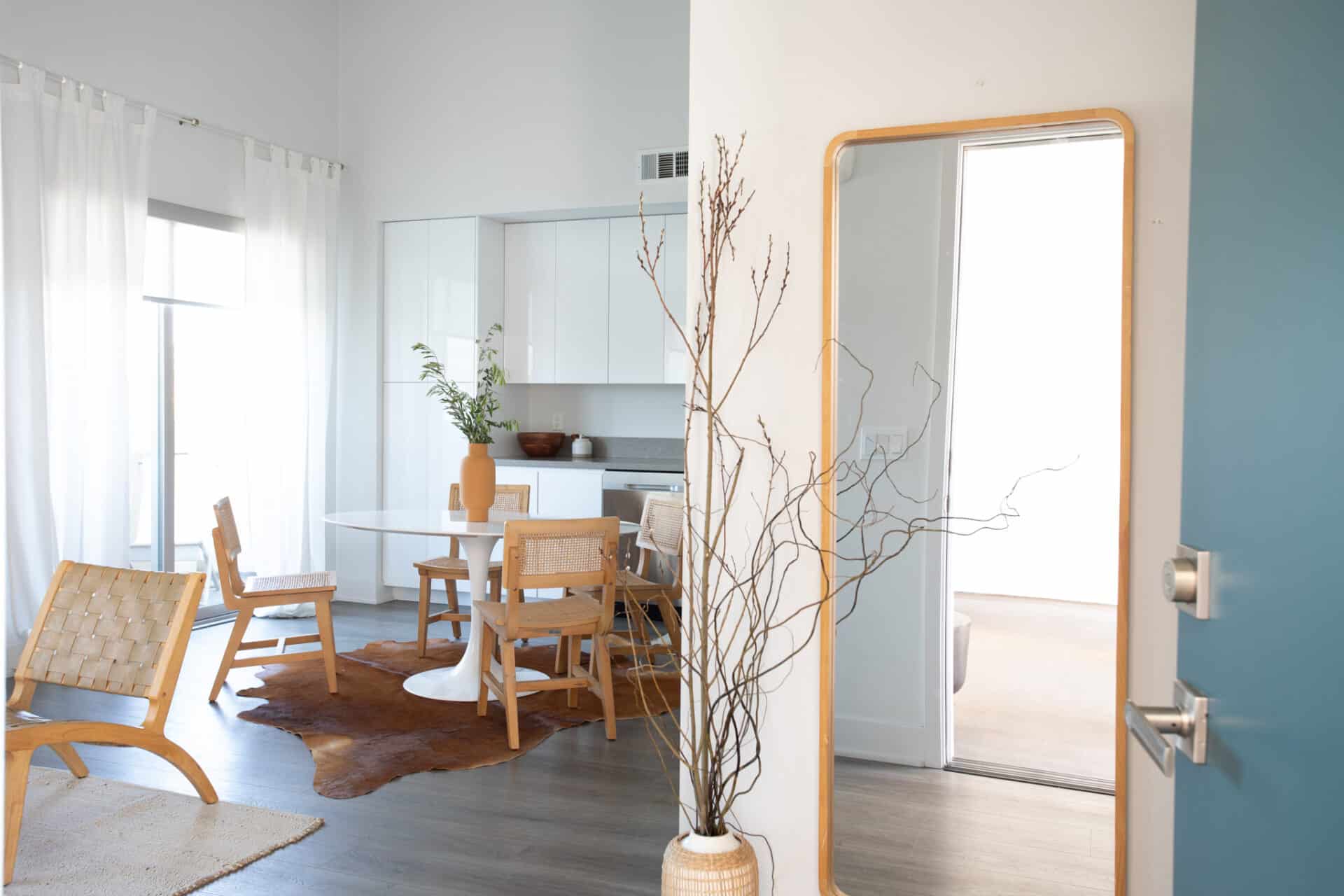 “The moment I walked into this apartment I knew it was the one. With its soaring 15 ft ceilings and uninterrupted eastern views it’s spacious, light and bright and expansive. The sunrise and sunsets here are stunning! You have the San Gabriel mountains surrounding you in the distance and in the winter they are snow capped. It’s quiet and peaceful, and so thoughtfully laid out. It’s the perfect place to call home. This building is beautiful and filled with people who love it and are committed to taking care of it. The roof deck offers you another breathtaking view. This place is truly special.”