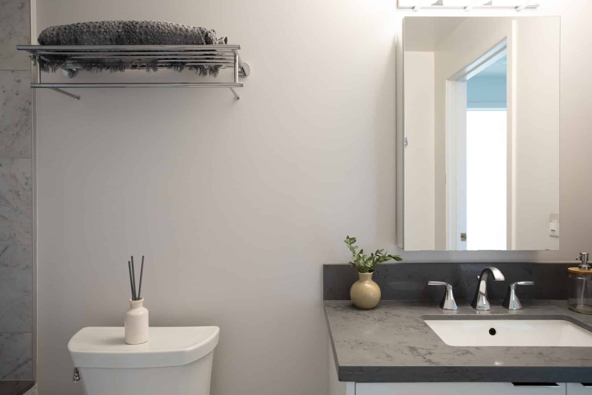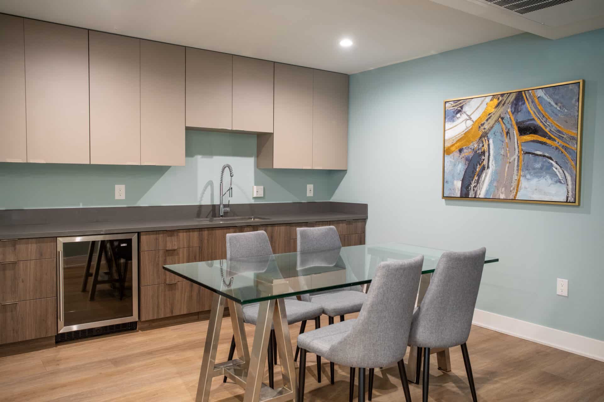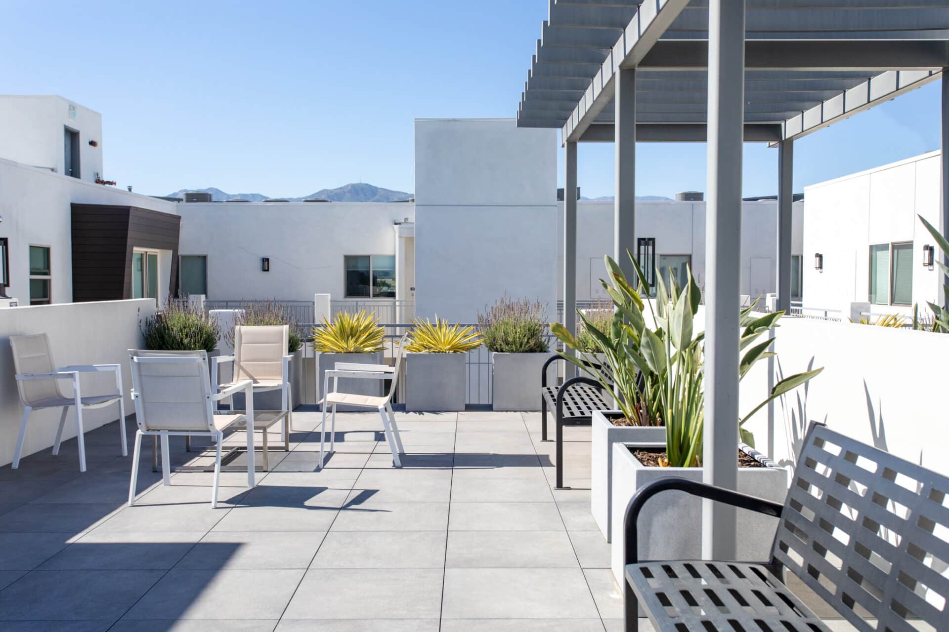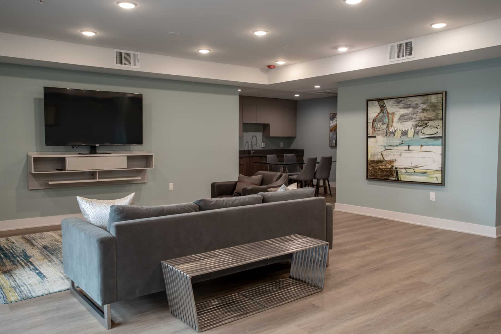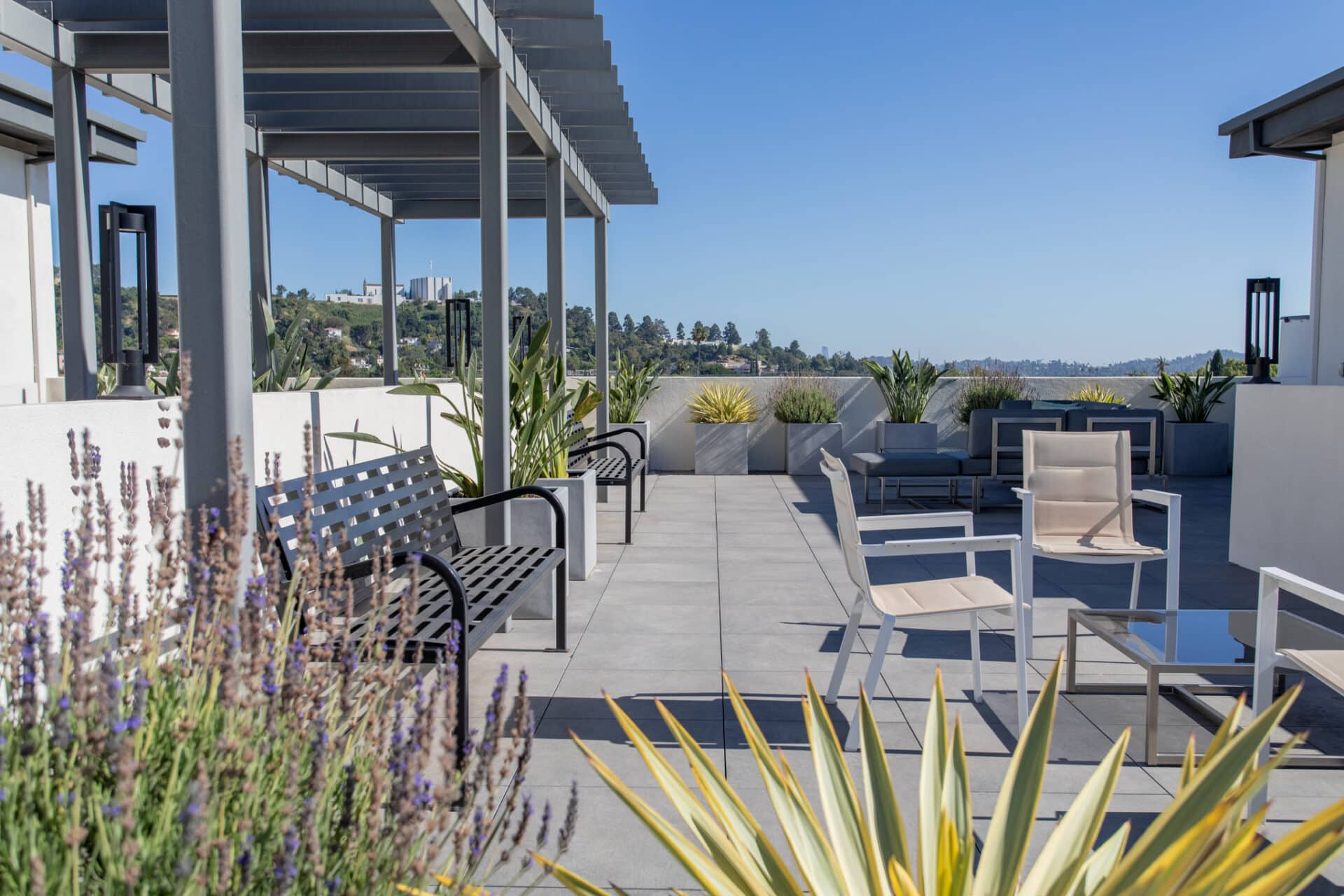 The building boasts an expansive rooftop deck to savor sunsets, and a recreation room to enjoy larger hang sessions with friends and guests.