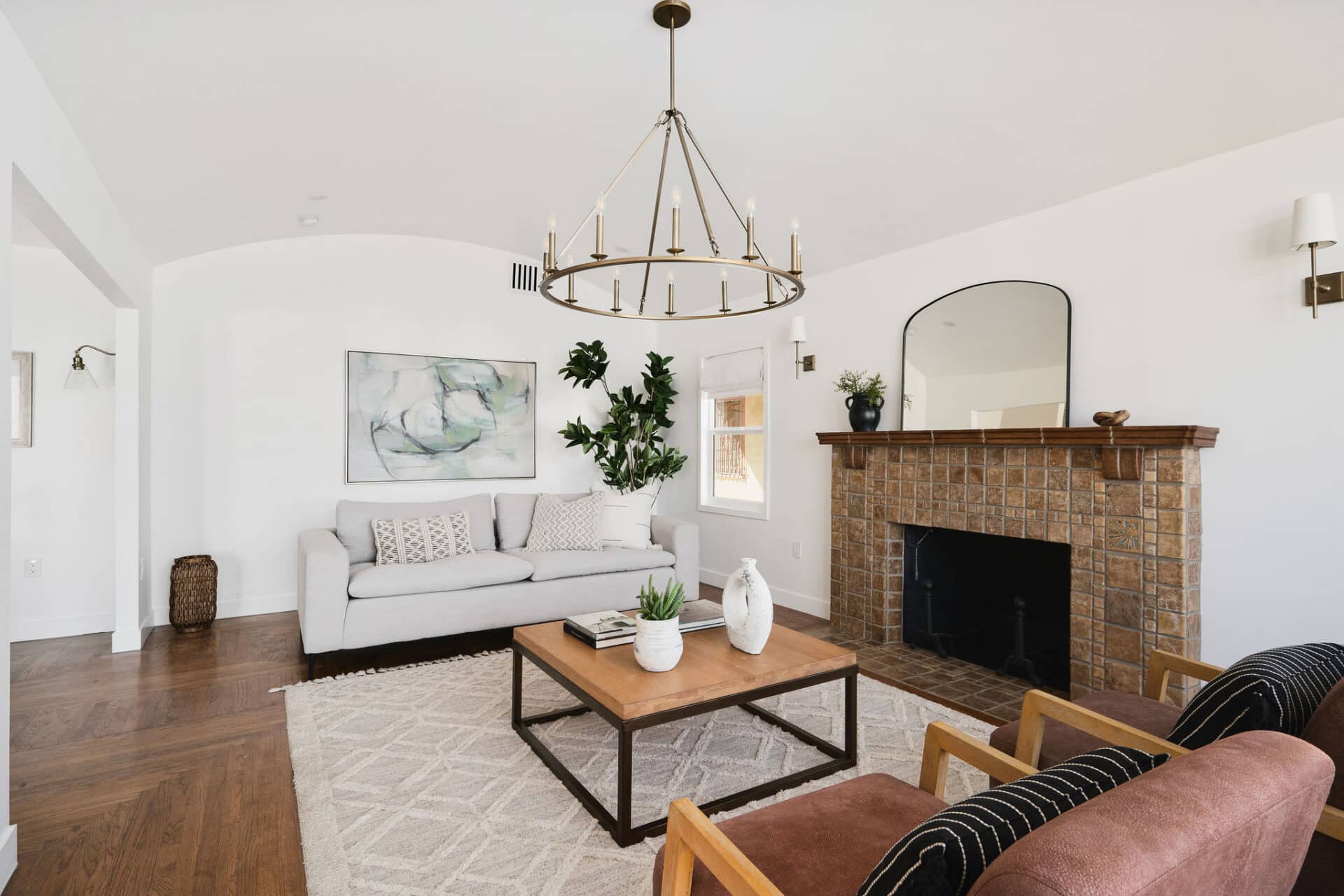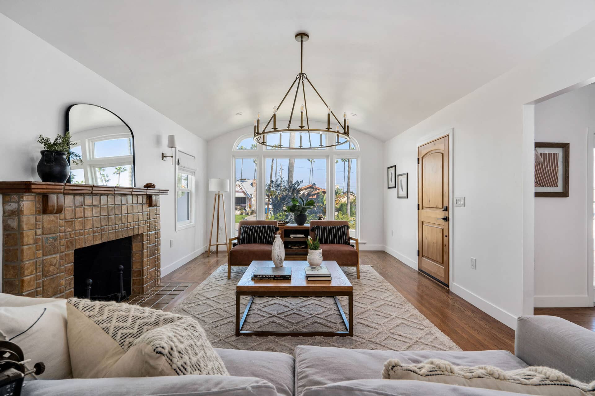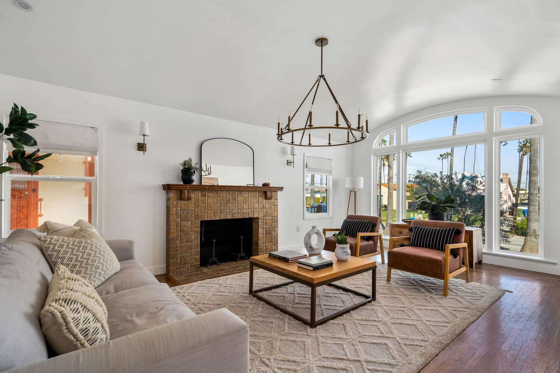 Energetic and cheery Spanish stunner in Windsor Hills! Set back from the street for added privacy and curb appeal, this special home offers an inviting terracotta tile front entry porch for sunny morning coffee sipping! Step through to a vaulted and beamed expansive living room with tons of sunshine and character detail, including classic fireplace with vintage Batchelder-style tile surround.