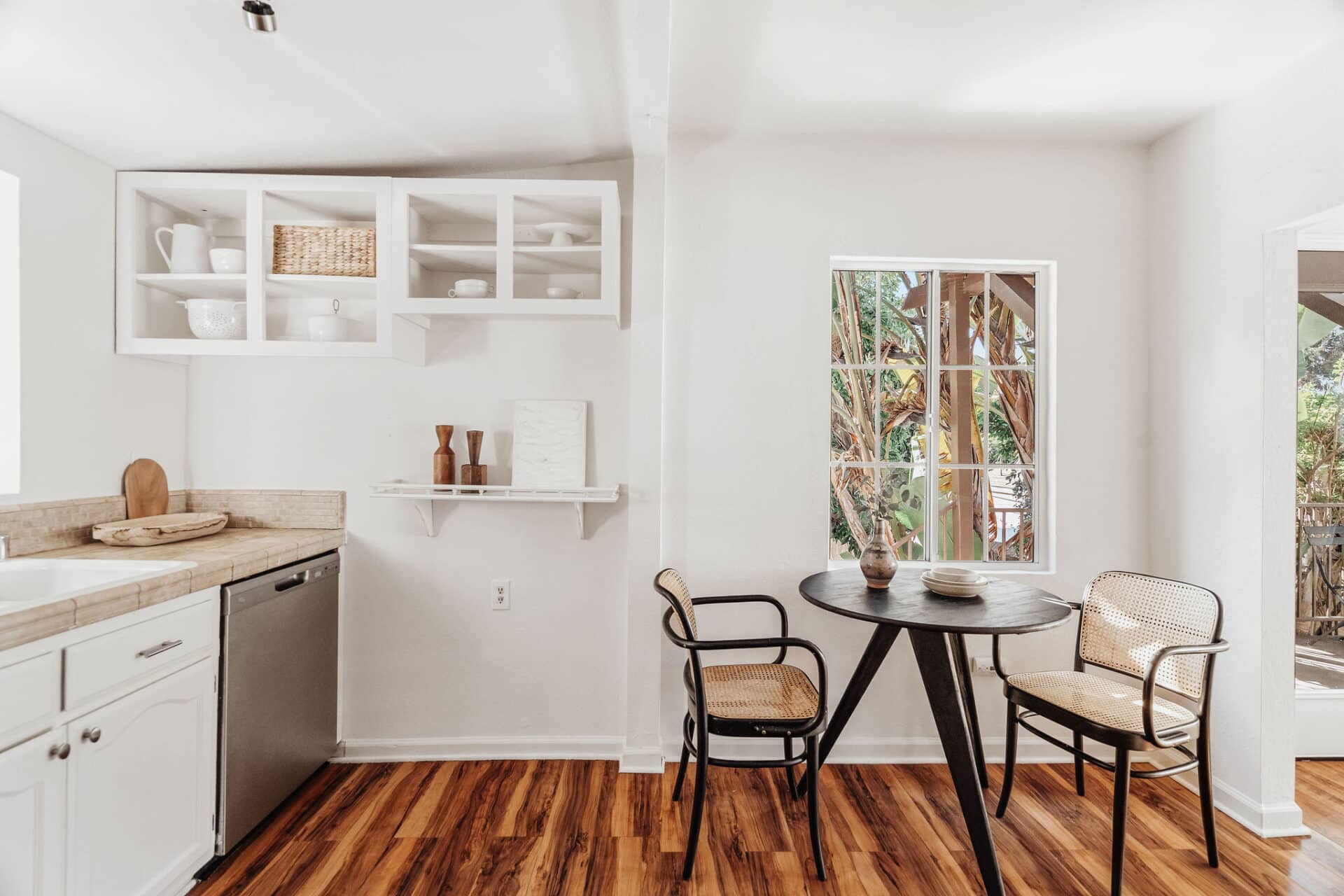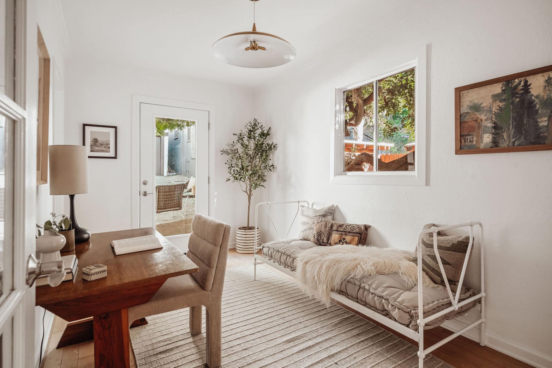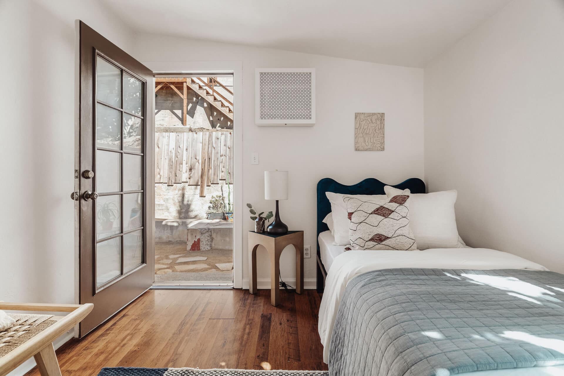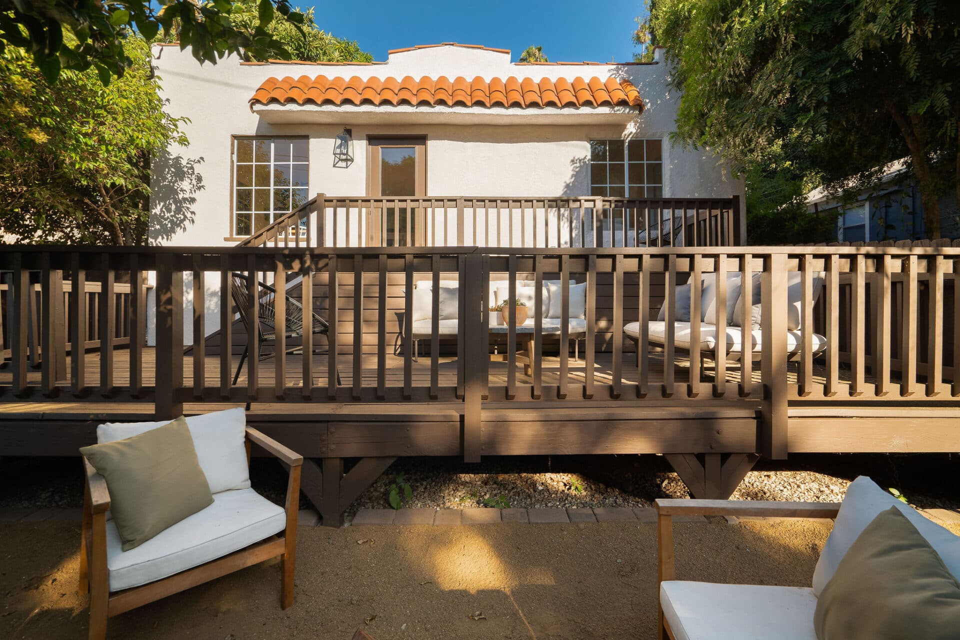 A sun-drenched open living space welcomes you in, offering the perfect place to lounge the day away in your hillside haven. Natural light beams into the bedrooms in the main home, which overlook the lush greenery outside. Both well-appointed bathrooms, one showcasing a gorgeous clawfoot bathtub, provide ample space for self care and relaxation. The guest house feels like a private hideaway, tucked away at the rear of the property with its own ample floor plan.