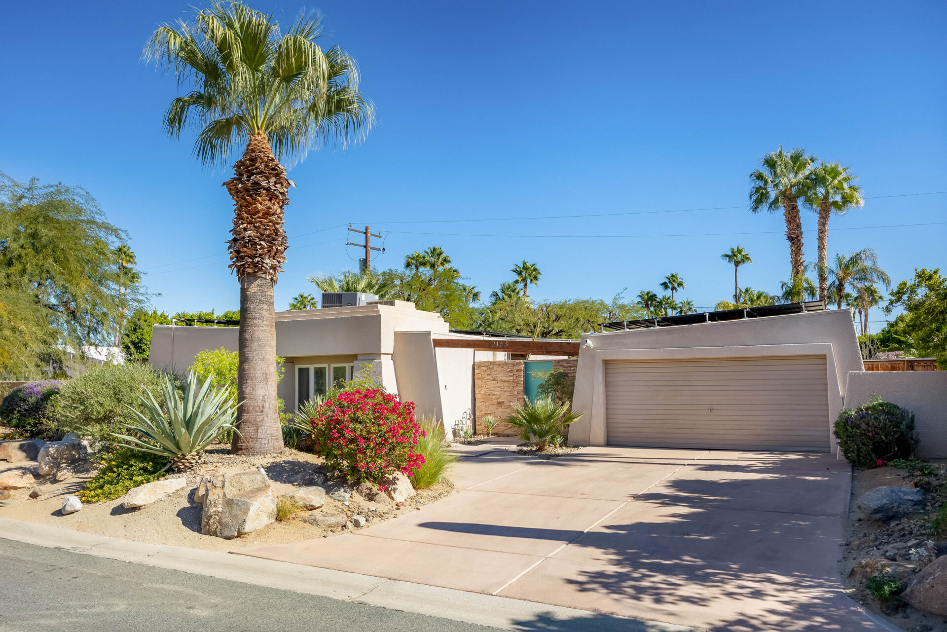 Welcome to your own slice of Palm Springs paradise! Tucked away in the historic Racquet Club neighborhood, on a quiet cul de sac, sits a stunning Santa Fe meets mid-century modern home that still captures the glamour of old Hollywood. (Fun fact: this was THE spot where silver screen legends used to escape from LA!)